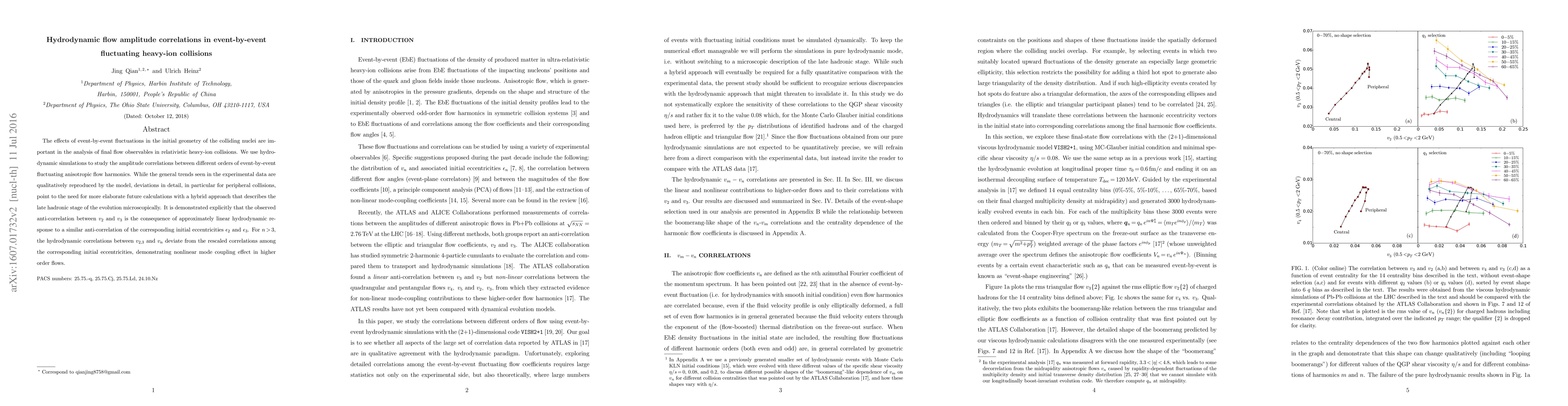This paper investigates hydrodynamic flow amplitude correlations in fluctuating heavy-ion collisions, showing that while hydrodynamic simulations can qualitatively reproduce experimental data, deviations suggest the need for hybrid models to describe the late hadronic stage. It highlights the anti-correlation between $v_2$ and $v_3$ due to initial geometry, and notes nonlinear coupling effects in higher-order flows.