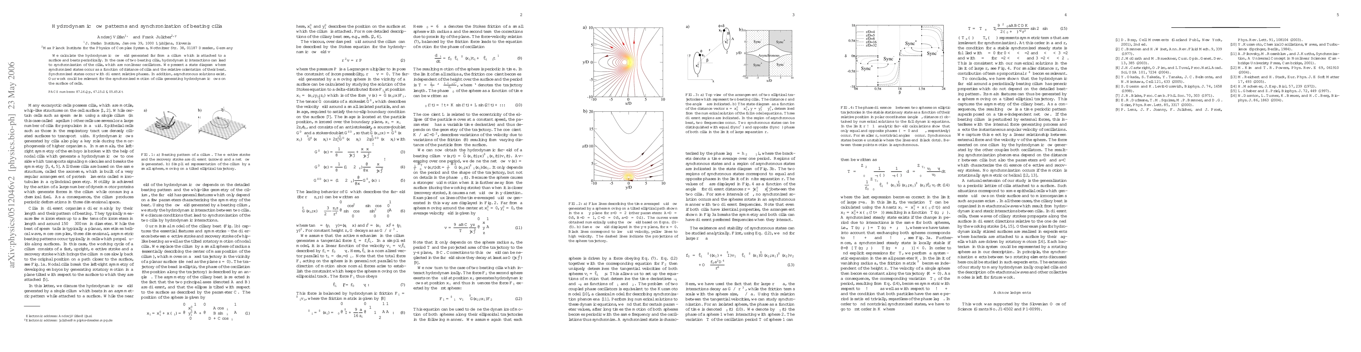 This study investigates hydrodynamic interactions between beating cilia, revealing how they can synchronize based on distance and orientation. The research presents a state diagram showing synchronized and asynchronous states, which has implications for understanding collective cilia motion in cellular environments.