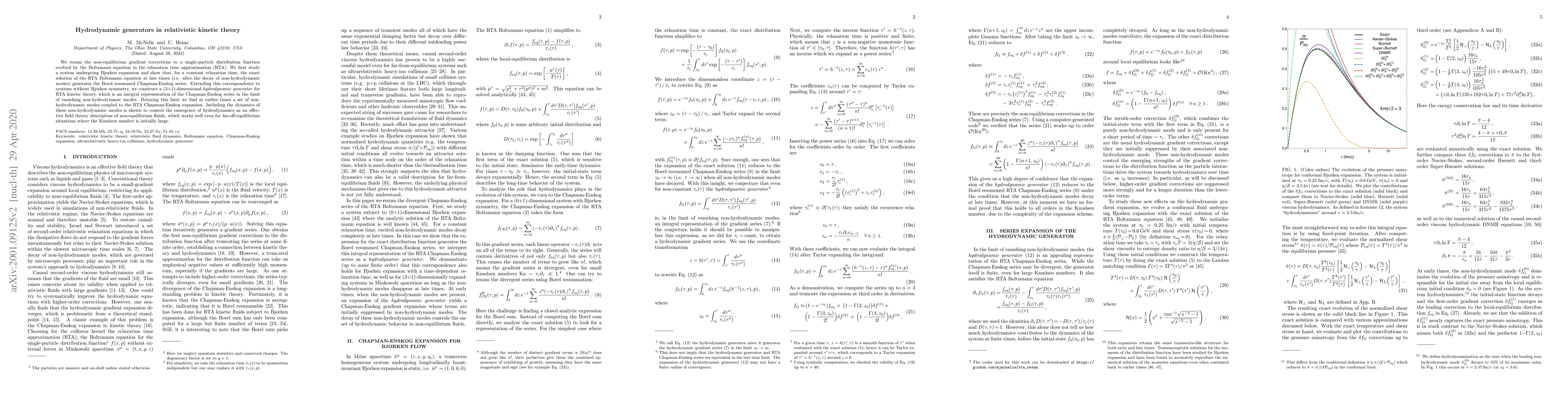 Researchers developed a hydrodynamic generator for relativistic kinetic theory, showing that it generates the Borel resummed Chapman-Enskog series at late times, effectively describing non-equilibrium fluids.