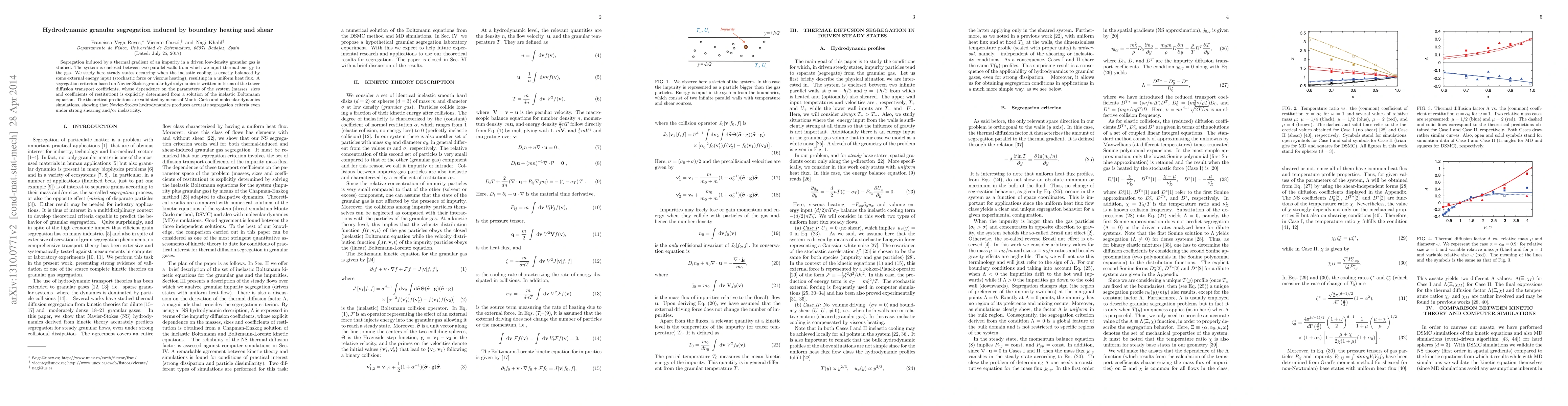 This paper investigates hydrodynamic granular segregation driven by boundary heating and shear, deriving a segregation criterion based on Navier-Stokes granular hydrodynamics. Theoretical predictions are validated through Monte Carlo and molecular dynamics simulations, demonstrating accurate segregation criteria under strong shear and inelasticity.