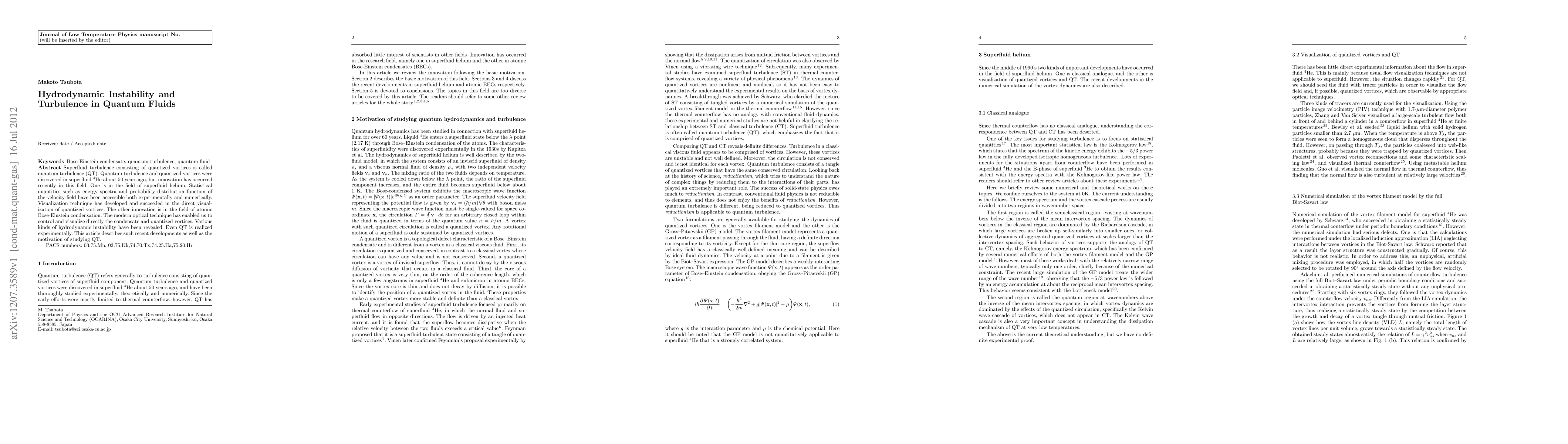 This paper reviews recent advancements in the study of quantum turbulence (QT) in superfluid helium and atomic Bose-Einstein condensates, highlighting experimental and numerical progress in visualizing quantized vortices and understanding hydrodynamic instabilities. It underscores the motivation behind studying QT and its implications for quantum fluid dynamics.