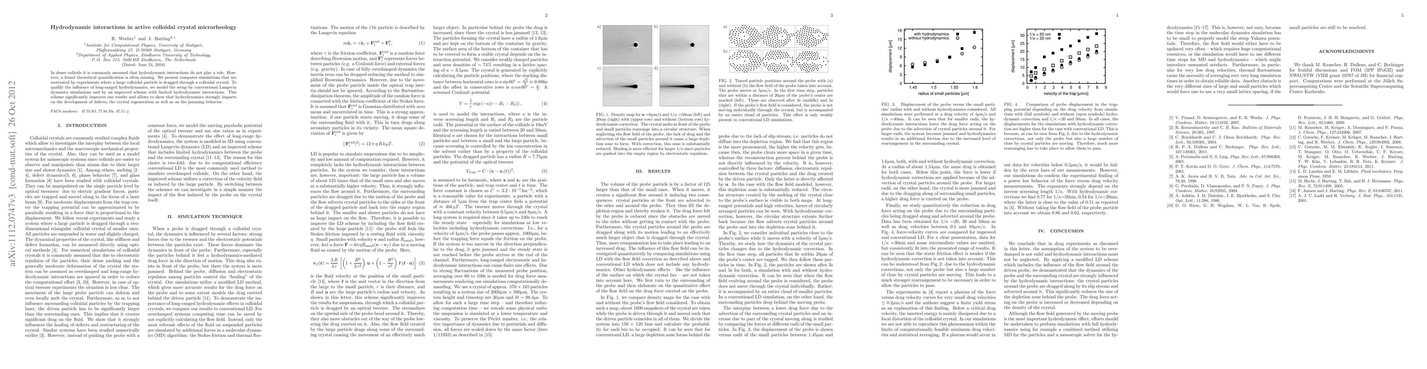 This paper uses computer simulations to demonstrate that hydrodynamic interactions significantly influence the behavior of colloidal crystals, affecting defect development, crystal regeneration, and jamming behavior, contrary to the common assumption that hydrodynamics is negligible in dense colloids. Improved simulation schemes reveal the substantial role of hydrodynamics in these processes.