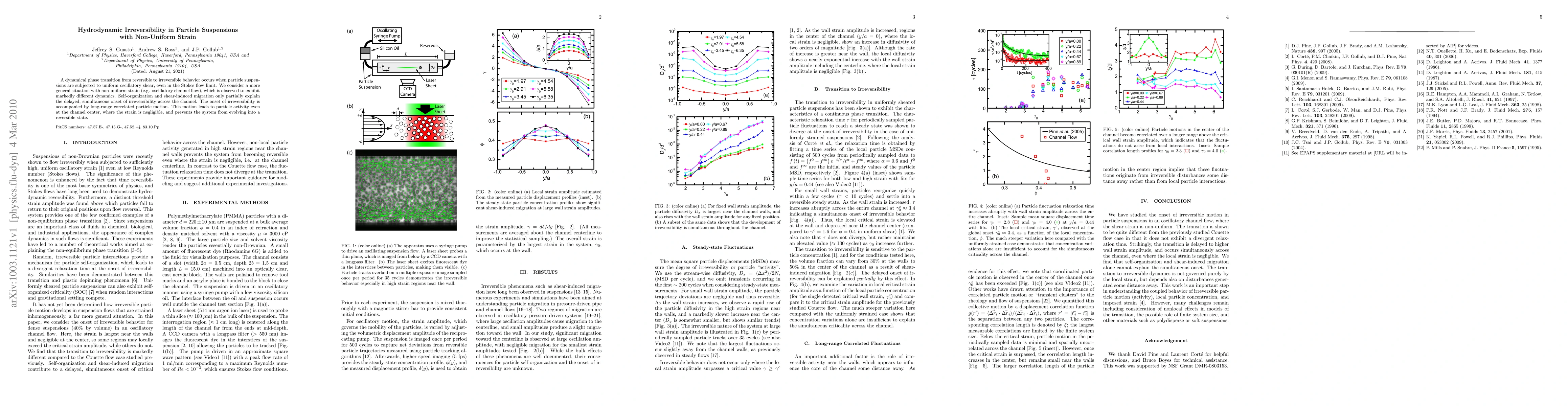 This paper investigates hydrodynamic irreversibility in particle suspensions under non-uniform strain, revealing that such conditions lead to a delayed, simultaneous onset of irreversibility and long-range correlated particle motion, preventing the system from reverting to a reversible state. The findings suggest that self-organization and shear-induced migration alone do not fully explain the observed dynamics.