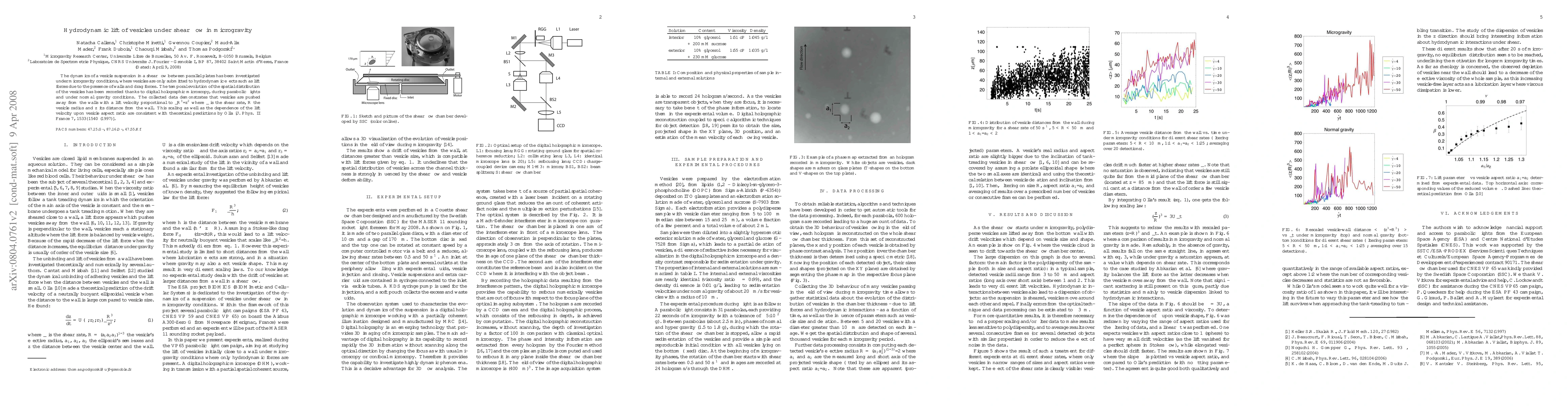 This study examines the hydrodynamic lift of vesicles in a shear flow between parallel plates under microgravity, isolating hydrodynamic forces like lift and drag. Using digital holographic microscopy during parabolic flights, it reveals that vesicle lift velocity scales as $\dot{\gamma} R^3/z^2$, aligning with Olla's theoretical predictions.