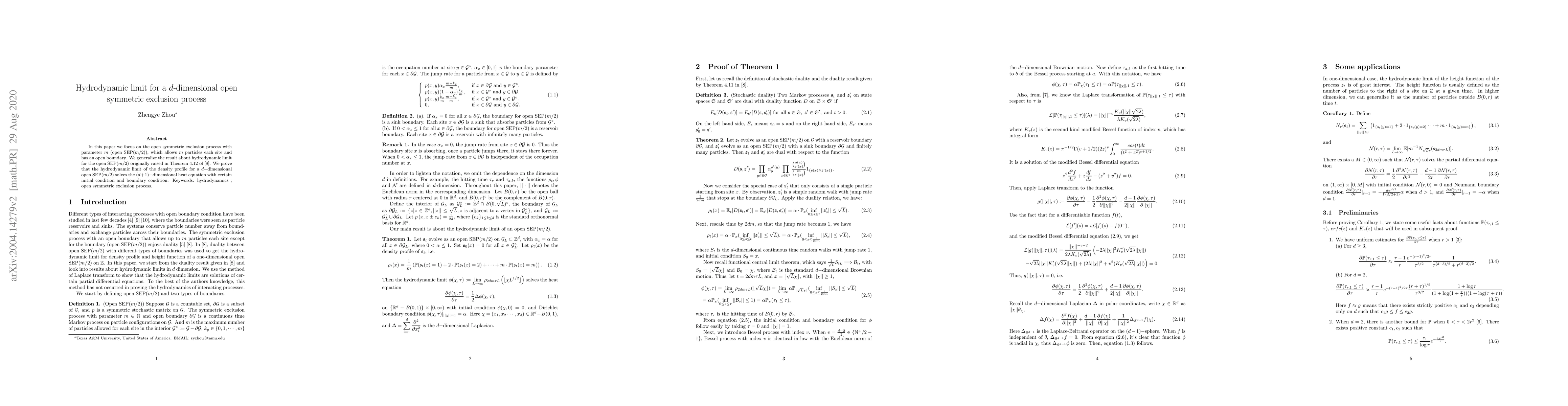 In this paper we focus on the open symmetric exclusion process with parameter $m$ (open SEP($m/2$)), which allows $m$ particles each site and has an open boundary. We generalize the result about hydrodynamic limit for the open SEP$(m/2)$ that was originally raised in Theorem 4.12 of arXiv:1908.02359. We prove that the hydrodynamic limit of the density profile for a $d-$dimensional open SEP$(m/2)$ solves the $(d+1)-$dimensional heat equation with certain initial condition and boundary condition.