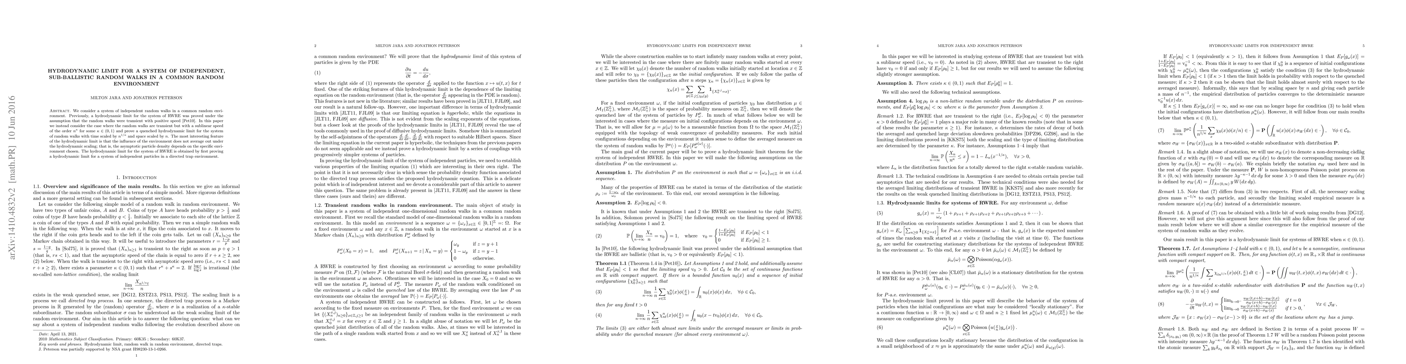 This paper proves a quenched hydrodynamic limit for a system of independent random walks in a common random environment, where the walks have sublinear speed. Unlike previous results, the influence of the environment persists in the limit, affecting the asymptotic particle density.