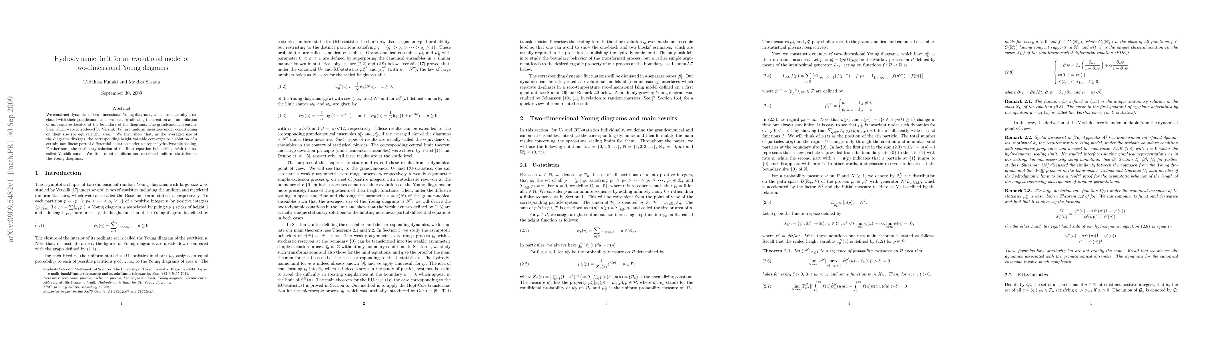 This paper develops dynamics for two-dimensional Young diagrams, demonstrating that their height variable converges to a non-linear partial differential equation solution under hydrodynamic scaling as size increases. The stationary solution of this equation corresponds to the Vershik curve.