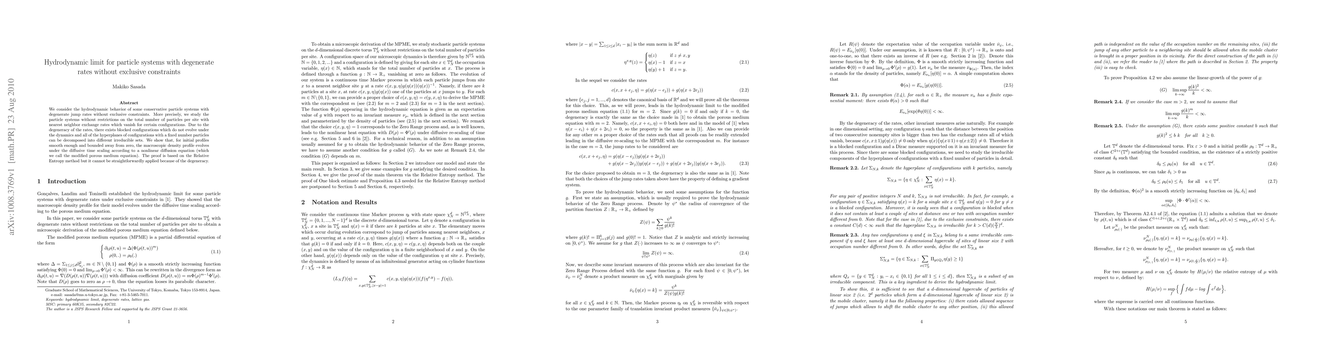 This paper investigates the hydrodynamic limit of particle systems with degenerate jump rates and no exclusive constraints, demonstrating that the macroscopic density profile follows a modified porous medium equation under diffusive time scaling. The Relative Entropy method is adapted to handle the complexities introduced by the degenerate rates and blocked configurations.