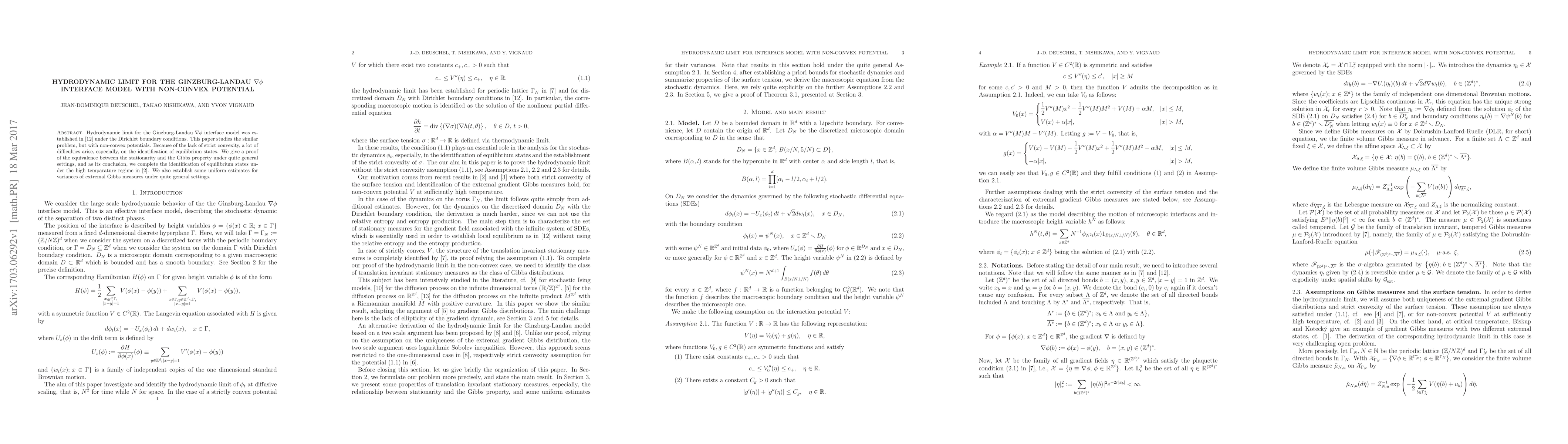 Hydrodynamic limit for the Ginzburg-Landau $\nabla\phi$ interface model was established in [Nishikawa, 2003] under the Dirichlet boundary conditions. This paper studies the similar problem, but with non-convex potentials. Because of the lack of strict convexity, a lot of difficulties arise, especially, on the identification of equilibrium states. We give a proof of the equivalence between the stationarity and the Gibbs property under quite general settings, and as its conclusion, we complete the identification of equilibrium states under the high temparature regime in [Deuschel and Cotar, 2008]. We also establish some uniform estimates for variances of extremal Gibbs measures under quite general settings.