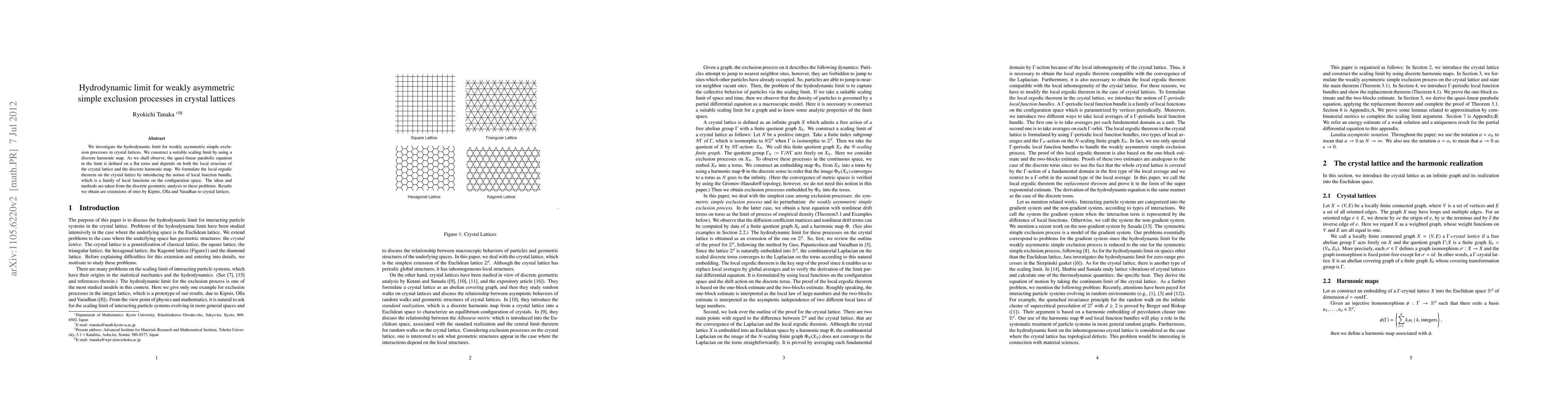 This paper investigates the hydrodynamic limit of weakly asymmetric simple exclusion processes in crystal lattices, constructing a scaling limit using a discrete harmonic map. The resulting quasi-linear parabolic equation depends on the lattice's local structure and the discrete harmonic map, extending previous results by Kipnis, Olla, and Varadhan to crystal lattices.
