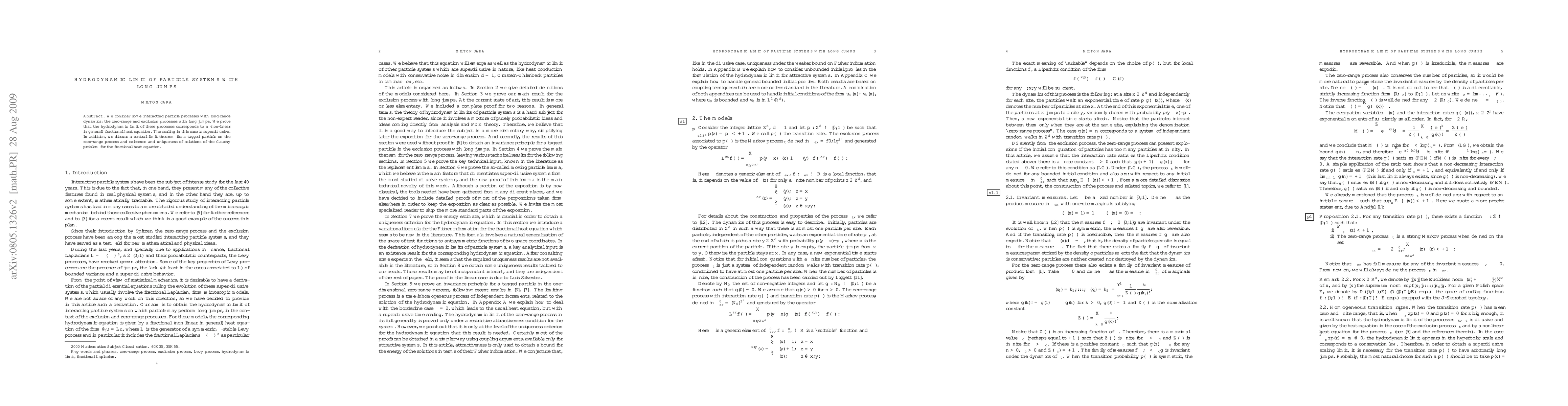The research investigates the hydrodynamic limit of particle systems with long jumps, showing that it corresponds to a superdiffusive fractional heat equation, and also explores the central limit theorem for tagged particles and the existence/uniqueness of solutions for the fractional heat equation.