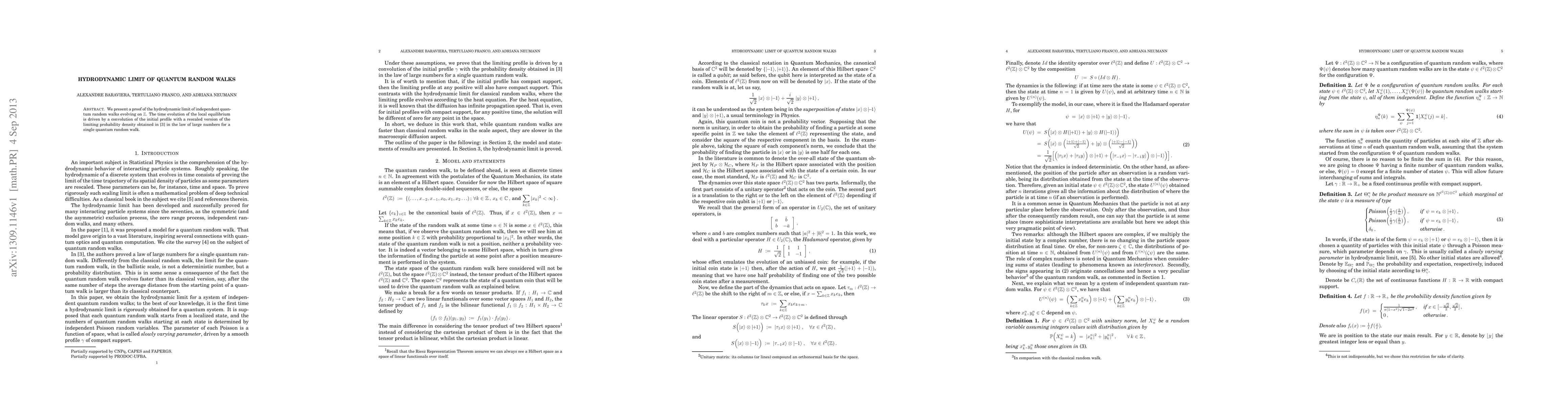 This paper provides a mathematical proof demonstrating that independent quantum random walks on the integer number line Z approach a hydrodynamic limit, establishing a bridge between quantum mechanics and fluid dynamics.