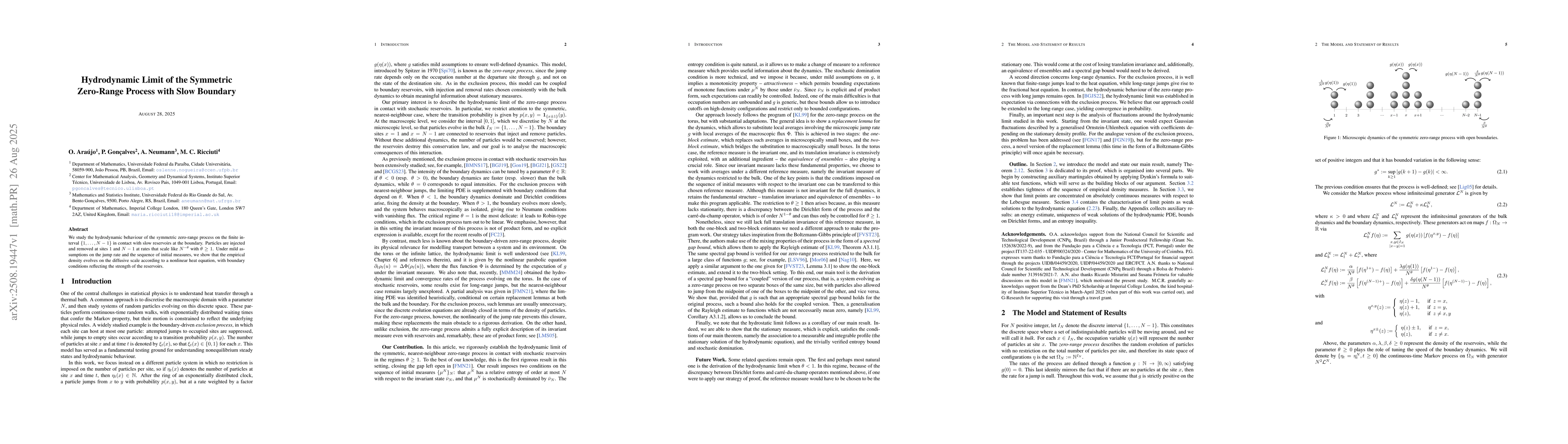 We study the hydrodynamic behaviour of the symmetric zero-range process on the finite interval $\{1, \ldots, N-1\}$ in contact with slow reservoirs at the boundary. Particles are injected and removed at sites $1$ and $N-1$ at rates that scale like $N^{-\theta}$ with $\theta\ge1$. Under mild assumptions on the jump rate and the sequence of initial measures, we show that the empirical density evolves on the diffusive scale according to a nonlinear heat equation, with boundary conditions reflecting the strength of the reservoirs.