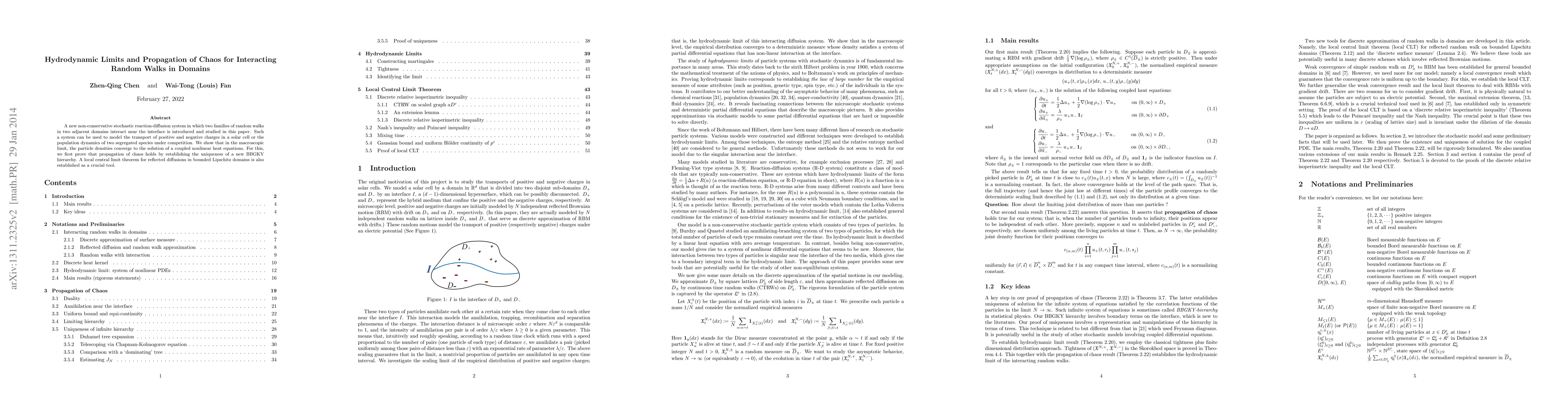 A new system modeling the interaction of two random walks in adjacent domains is studied, showing that macroscopic densities converge to a solution of coupled nonlinear heat equations, with the establishment of propagation of chaos and local central limit theorem.