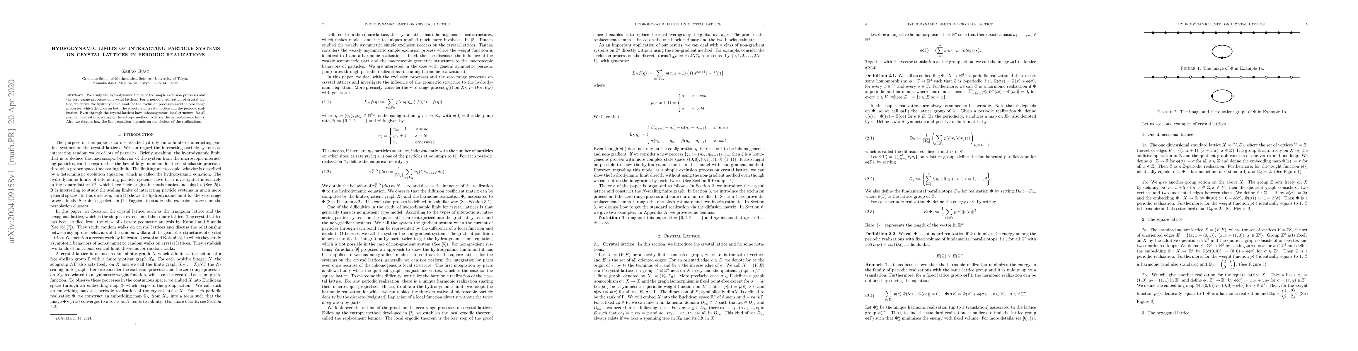 This paper investigates the hydrodynamic limits of simple exclusion and zero range processes on crystal lattices under periodic realizations, deriving these limits using the entropy method and discussing their dependence on the lattice structure and specific realizations.