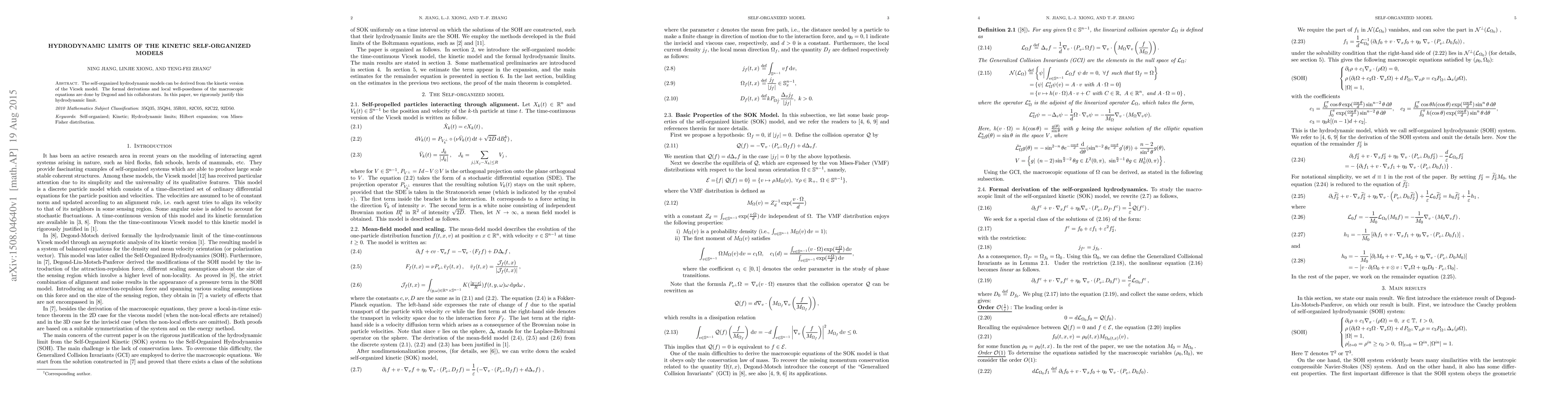 This paper rigorously justifies the hydrodynamic limit of self-organized models derived from the kinetic Vicsek model, confirming the formal derivations and local well-posedness of the macroscopic equations established by Degond and collaborators.