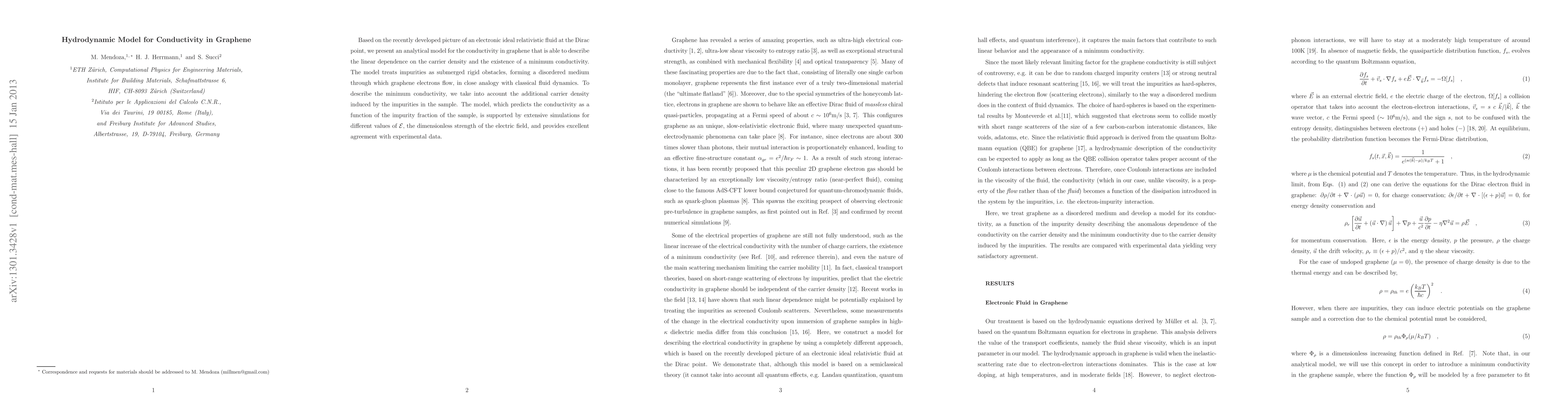 The paper introduces a hydrodynamic model for graphene's conductivity, incorporating impurities as rigid obstacles, which successfully predicts conductivity trends and agrees with experimental data.
