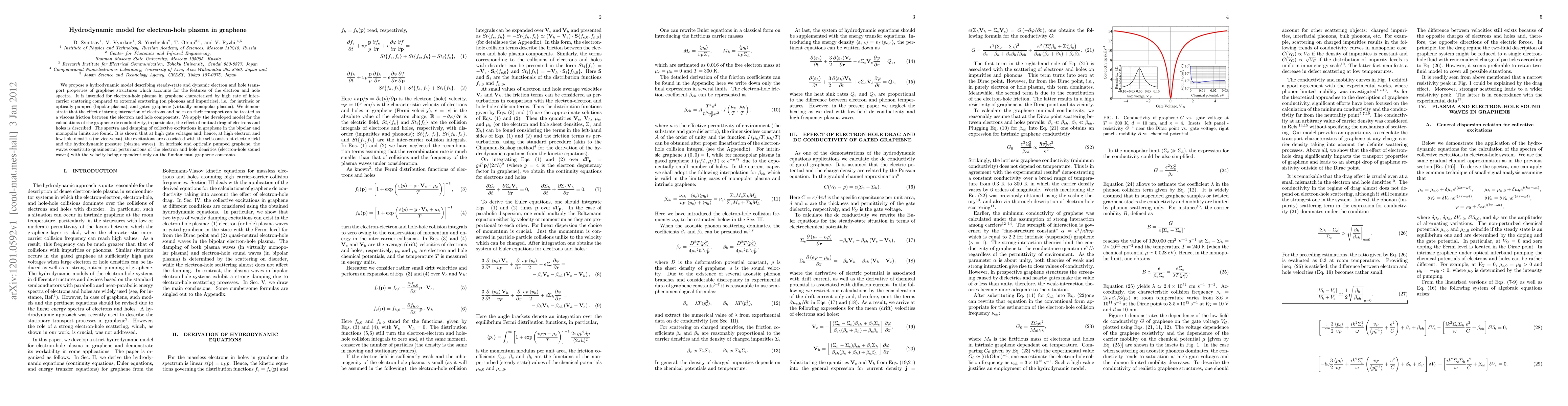 This paper proposes a hydrodynamic model for electron-hole plasma in graphene that accounts for high intercarrier scattering rates, demonstrating viscous friction effects between electrons and holes, and calculating graphene's dc conductivity, including mutual drag. It also explores collective excitations and plasma waves in various graphene states.