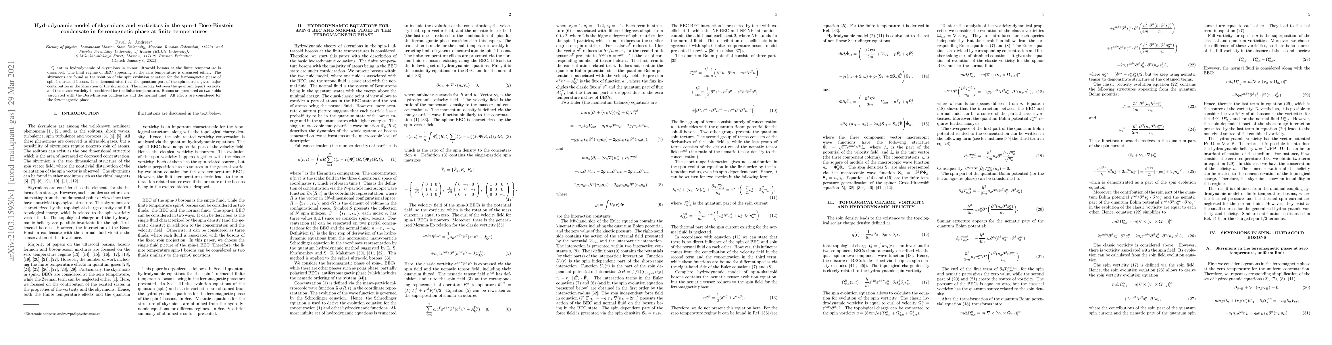 This paper investigates the quantum hydrodynamic behavior of skyrmions in spin-1 Bose-Einstein condensates at finite temperatures, highlighting the role of quantum spin current in skyrmion formation. It also examines the interaction between quantum and classical vorticities within the ferromagnetic phase of spin-1 ultracold bosons.