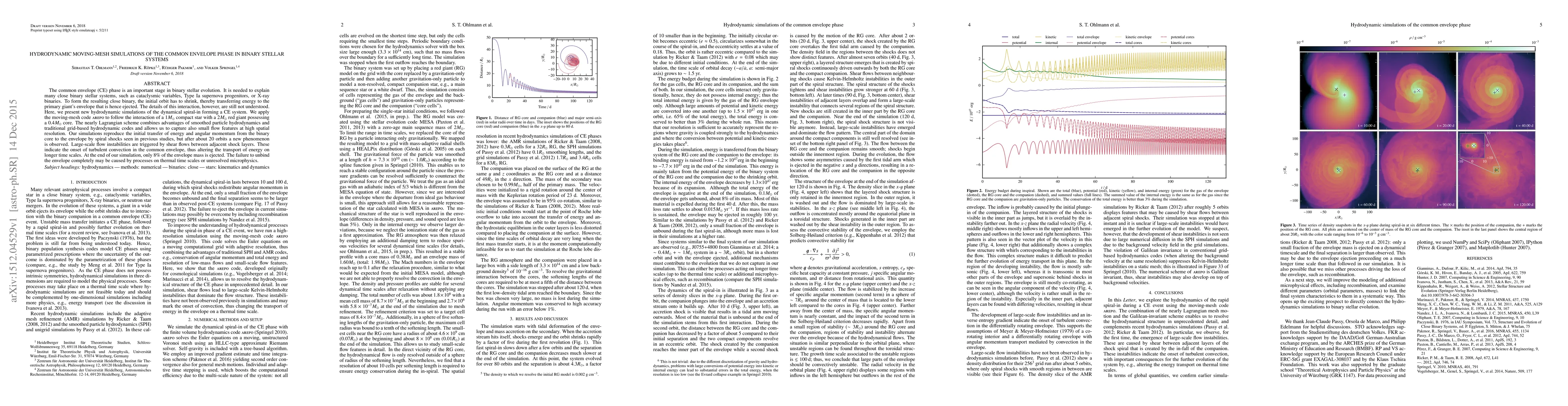 This paper presents hydrodynamic simulations of the common envelope phase in binary stellar systems using the moving-mesh code AREPO, revealing the onset of turbulent convection and large-scale flow instabilities, which alter energy transport. Despite initial energy transfer, only 8% of the envelope mass is ejected, suggesting unresolved microphysics or thermal time scales may play a role.