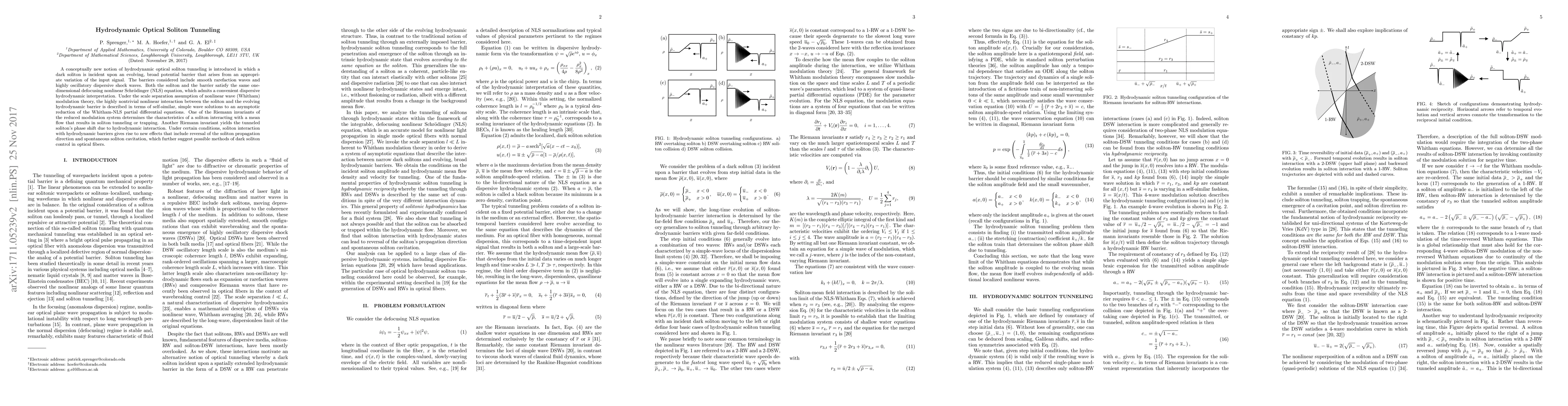 Researchers introduce a concept of hydrodynamic optical soliton tunneling, where a dark soliton interacts with an evolving barrier, resulting in new effects like reversed propagation direction and spontaneous cavitation. The findings suggest possible methods for controlling dark solitons in optical fibers.