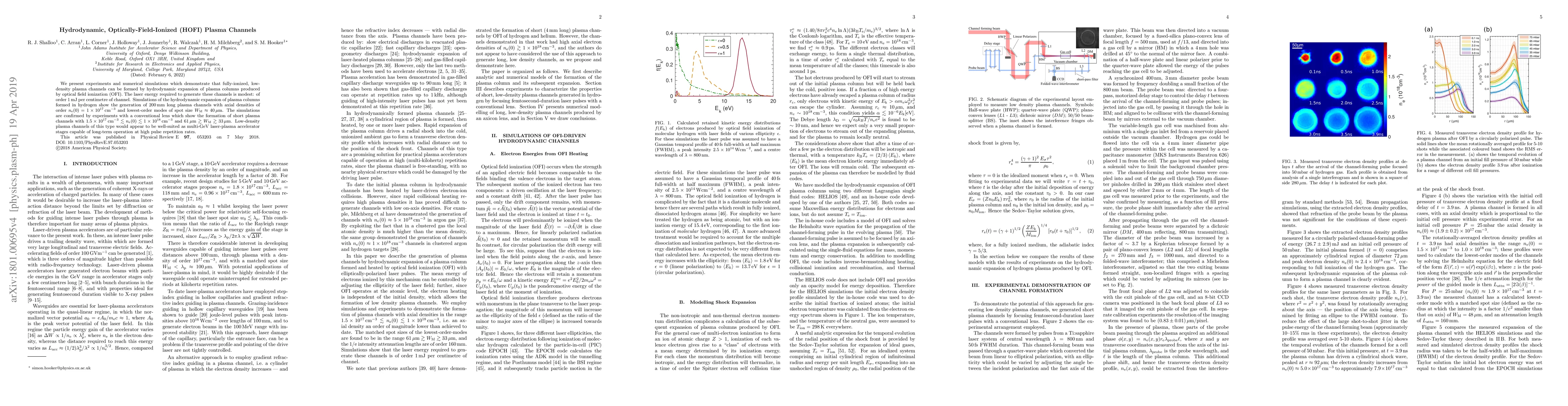 This paper demonstrates the formation of fully-ionized, low-density plasma channels via hydrodynamic expansion of optical field ionization-produced plasma columns. Simulations and experiments confirm the generation of 200 mm long channels with modest laser energy requirements, suggesting their potential for use in high-repetition-rate laser-plasma accelerators.