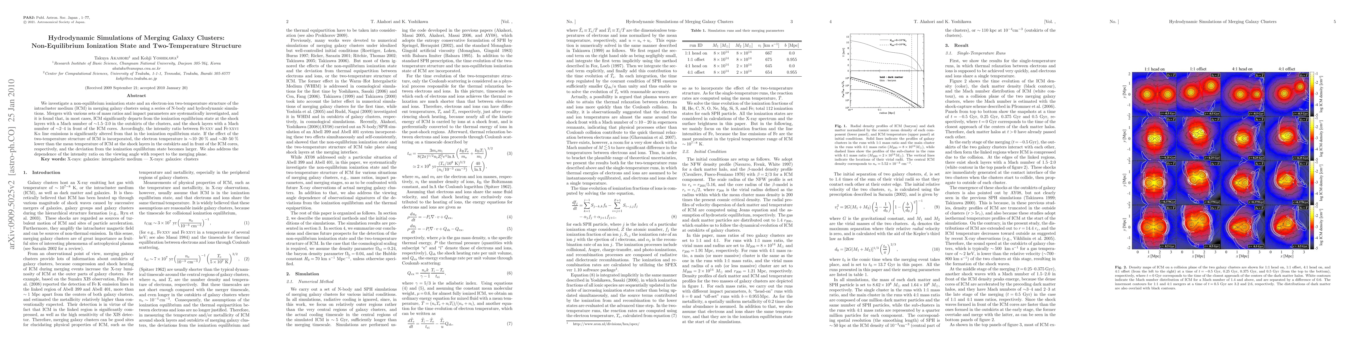 This study uses hydrodynamic simulations to explore the non-equilibrium ionization state and two-temperature structure of the intracluster medium in merging galaxy clusters. It reveals significant deviations from ionization equilibrium in shock layers, altering Fe line emission ratios and showing lower electron temperatures in these regions.