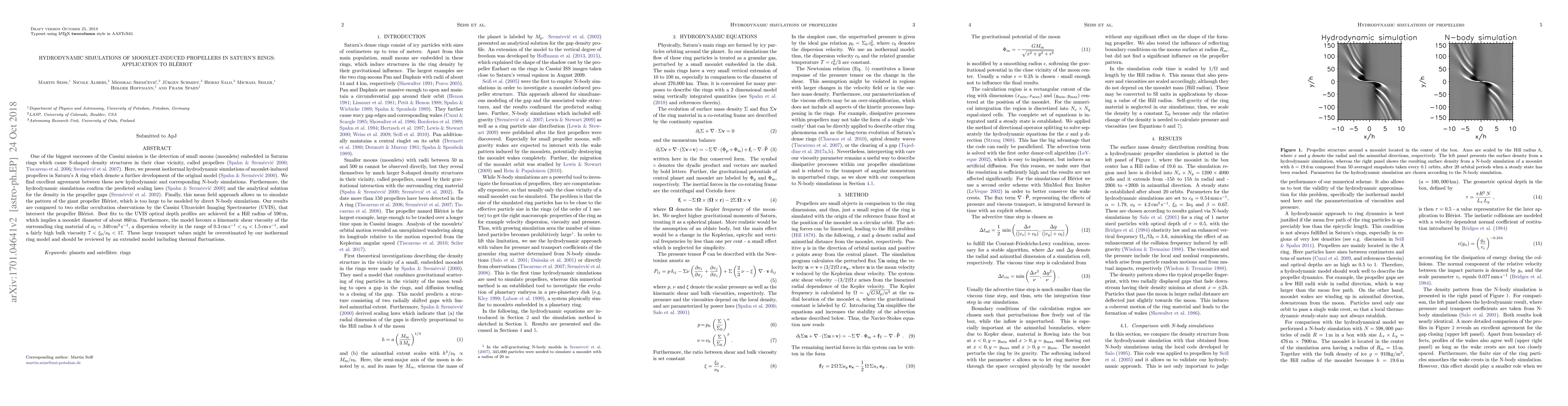 This paper presents advanced hydrodynamic simulations of moonlet-induced propellers in Saturn's A ring, confirming existing scaling laws and analytical solutions. The simulations successfully model the large propeller Bleriot, revealing a moonlet diameter of about 860 m and suggesting high transport values in the ring material that may need further evaluation.