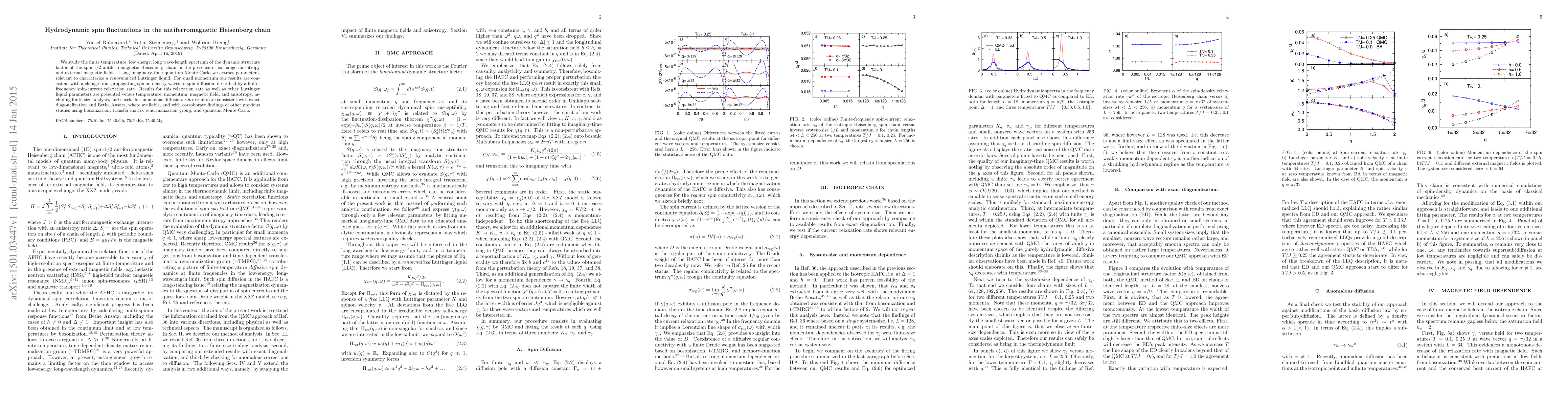 We study the finite temperature, low energy, long wave-length spectrum of the dynamic structure factor of the spin-$1/2$ antiferromagnetic Heisenberg chain in the presence of exchange anisotropy and external magnetic fields. Using imaginary-time quantum Monte-Carlo we extract parameters, relevant to characterize a {\it renormalized} Luttinger liquid. For small momentum our results are consistent with a change from propagating spinon density waves to spin diffusion, described by a finite-frequency spin-current relaxation rate. Results for this relaxation rate as well as other Luttinger liquid parameters are presented versus temperature, momentum, magnetic field, and anisotropy, including finite-size analysis, and checks for anomalous diffusion. Our results are consistent with exact diagonalization and Bethe Ansatz, where available, and with corroborate findings of other previous studies using bosonization, transfer matrix renormalization group, and quantum Monte-Carlo.