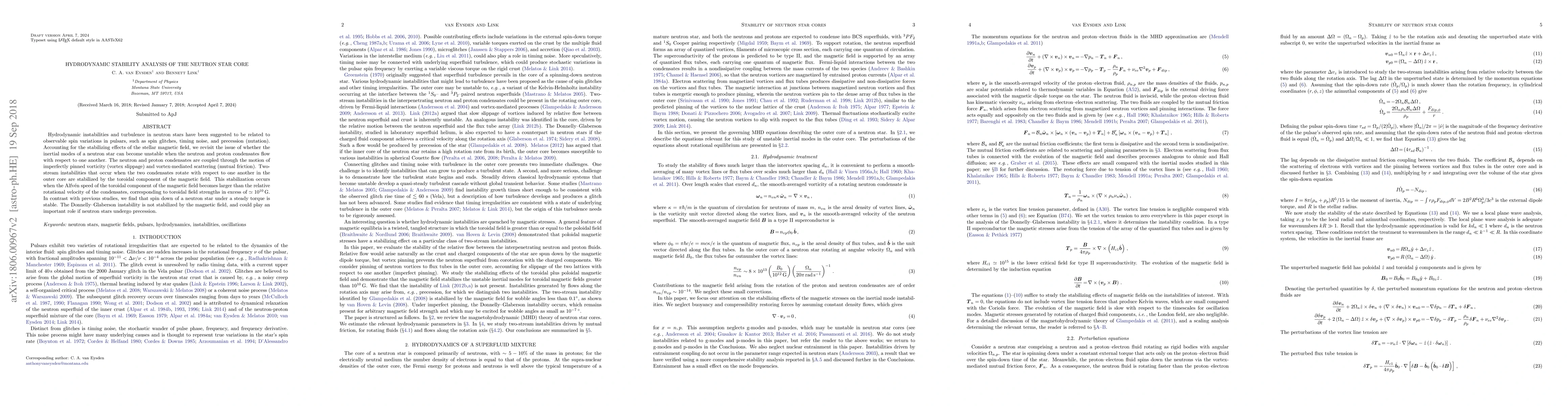 Researchers analyzed hydrodynamic stability in neutron star cores, finding that strong magnetic fields can stabilize inertial modes, but don't prevent spin glitches or precession; a previously thought-stabilized instability may still be relevant.