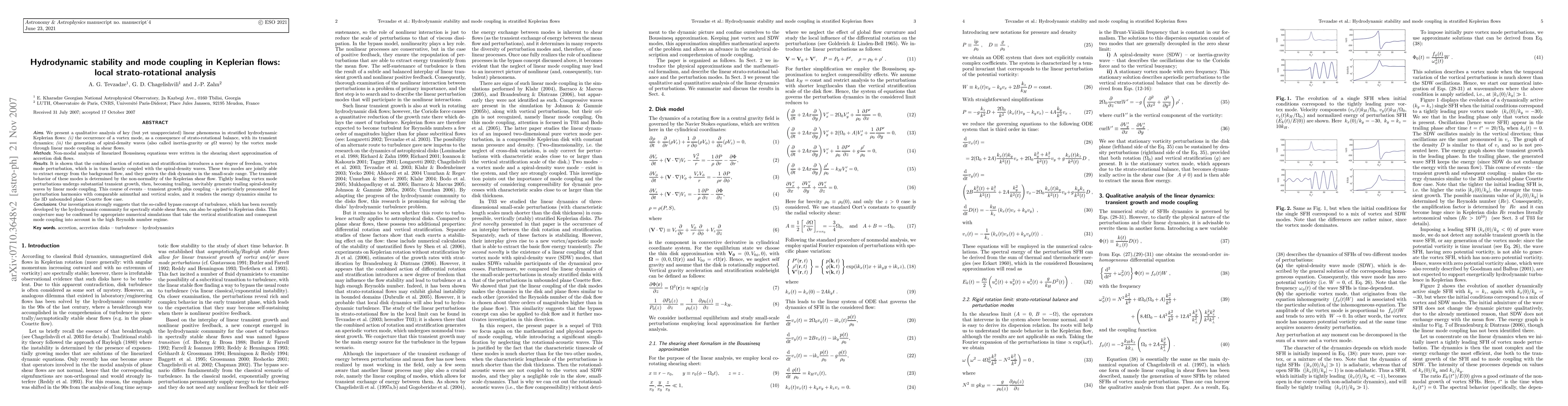 This paper investigates the linear phenomena in stratified hydrodynamic Keplerian flows, identifying a vortex mode and its coupling with spiral-density waves through non-modal analysis. The study reveals that these modes extract energy from the background flow and govern small-scale disk dynamics, suggesting the applicability of the turbulence bypass concept to Keplerian disks.