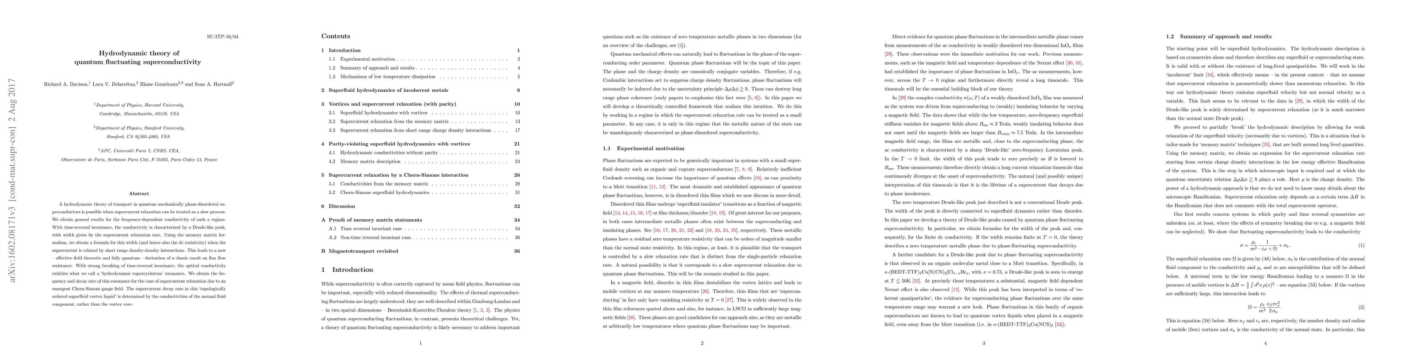 A hydrodynamic theory of transport in quantum mechanically phase-disordered superconductors is possible when supercurrent relaxation can be treated as a slow process. We obtain general results for the frequency-dependent conductivity of such a regime. With time-reversal invariance, the conductivity is characterized by a Drude-like peak, with width given by the supercurrent relaxation rate. Using the memory matrix formalism, we obtain a formula for this width (and hence also the dc resistivity) when the supercurrent is relaxed by short range Coulomb interactions. This leads to a new -- effective field theoretic and fully quantum -- derivation of a classic result on flux flow resistance. With strong breaking of time-reversal invariance, the optical conductivity exhibits what we call a `hydrodynamic supercyclotron' resonance. We obtain the frequency and decay rate of this resonance for the case of supercurrent relaxation due to an emergent Chern-Simons gauge field. The supercurrent decay rate in this `topologically ordered superfluid vortex liquid' is determined by the conductivities of the normal component of the liquid. Our work gives a controlled framework for low temperature metallic phases arising from phase-disordered superconductivity.