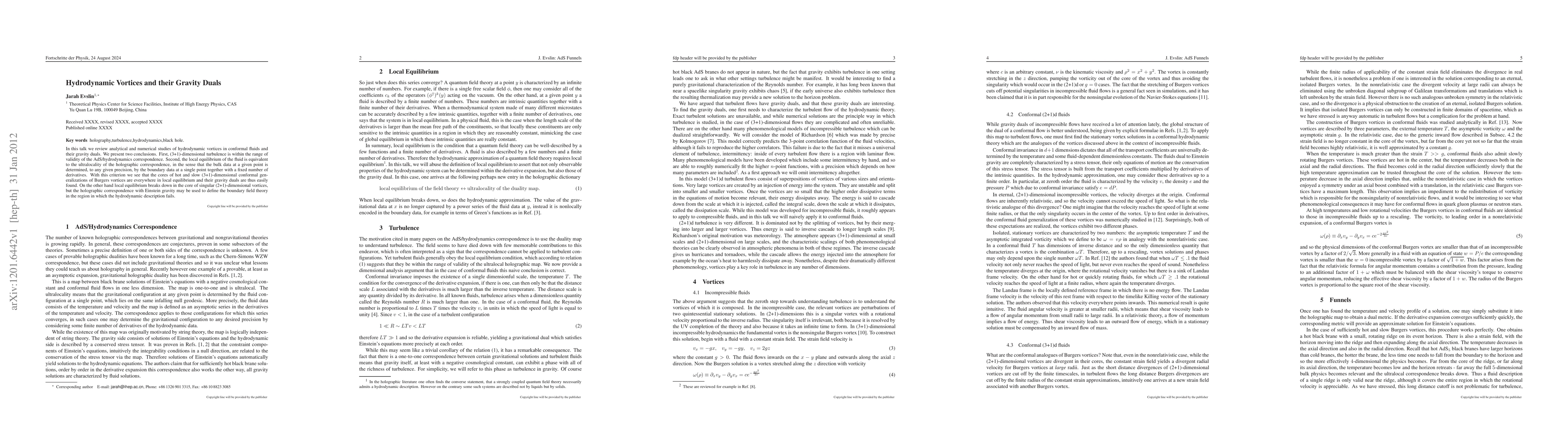 In this talk we review analytical and numerical studies of hydrodynamic vortices in conformal fluids and their gravity duals. We present two conclusions. First, (3+1)-dimensional turbulence is within the range of validity of the AdS/hydrodynamics correspondence. Second, the local equilibrium of the fluid is equivalent to the ultralocality of the holographic correspondence, in the sense that the bulk data at a given point is determined, to any given precision, by the boundary data at a single point together with a fixed number of derivatives. With this criterion we see that the cores of hot and slow (3+1)-dimensional conformal generalizations of Burgers vortices are everywhere in local equilibrium and their gravity duals are thus easily found. On the other hand local equilibrium breaks down in the core of singular (2+1)-dimensional vortices, but the holographic correspondence with Einstein gravity may be used to define the boundary field theory in the region in which the hydrodynamic description fails.