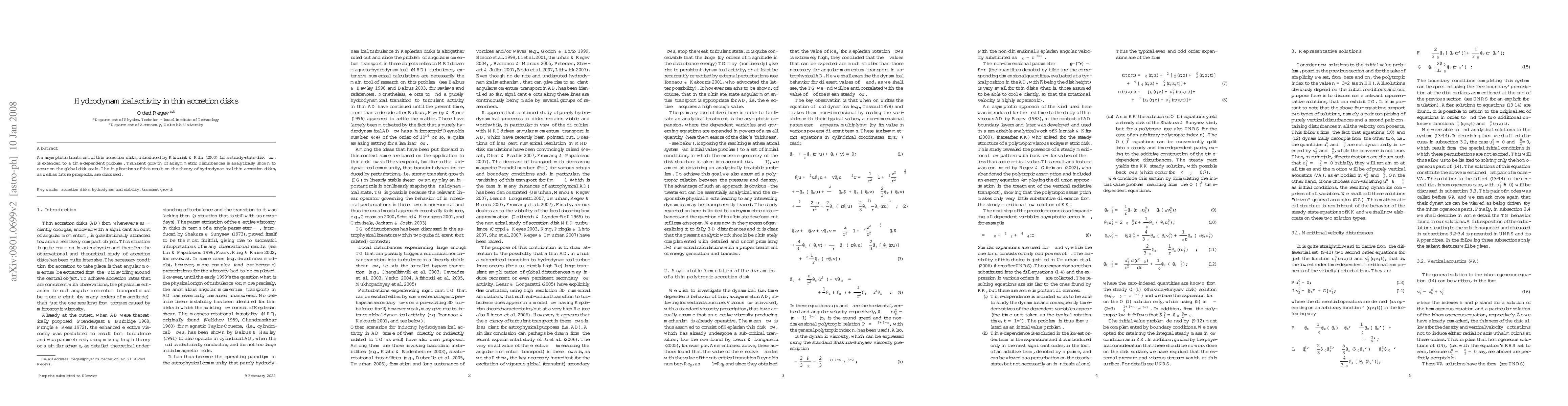 An asymptotic treatment of thin accretion disks, introduced by Klu\'zniak & Kita (2000) for a steady-state disk flow, is extended to a time-dependent problem. Transient growth of axisymmetric disturbances is analytically shown to occur on the global disk scale. The implications of this result on the theory of hydrodynamical thin accretion disks, as well as future prospects, are discussed.
