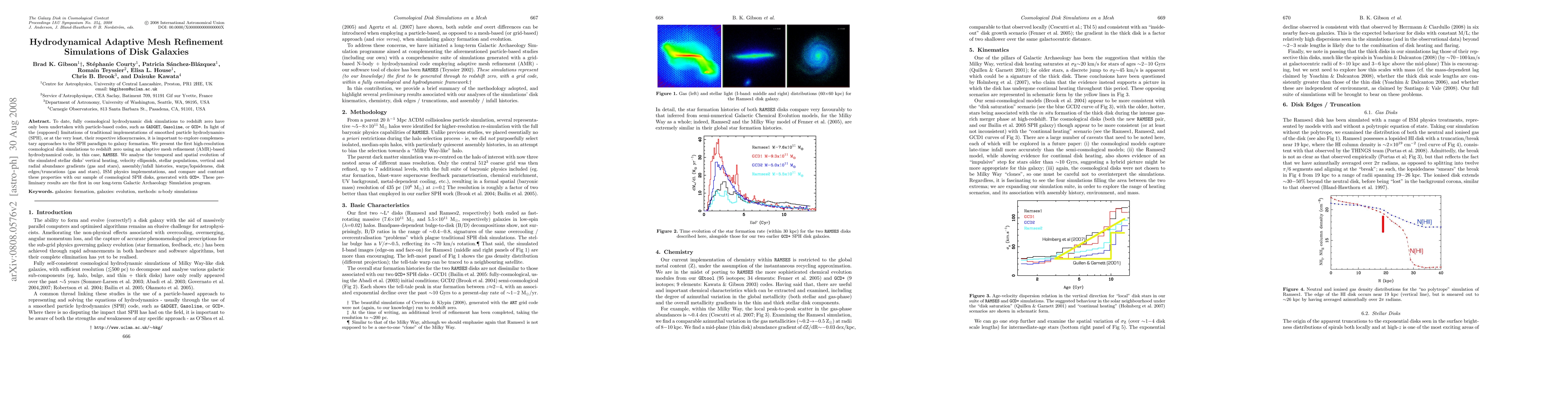 To date, fully cosmological hydrodynamic disk simulations to redshift zero have only been undertaken with particle-based codes, such as GADGET, Gasoline, or GCD+. In light of the (supposed) limitations of traditional implementations of smoothed particle hydrodynamics (SPH), or at the very least, their respective idiosyncrasies, it is important to explore complementary approaches to the SPH paradigm to galaxy formation. We present the first high-resolution cosmological disk simulations to redshift zero using an adaptive mesh refinement (AMR)-based hydrodynamical code, in this case, RAMSES. We analyse the temporal and spatial evolution of the simulated stellar disks' vertical heating, velocity ellipsoids, stellar populations, vertical and radial abundance gradients (gas and stars), assembly/infall histories, warps/lopsideness, disk edges/truncations (gas and stars), ISM physics implementations, and compare and contrast these properties with our sample of cosmological SPH disks, generated with GCD+. These preliminary results are the first in our long-term Galactic Archaeology Simulation program.