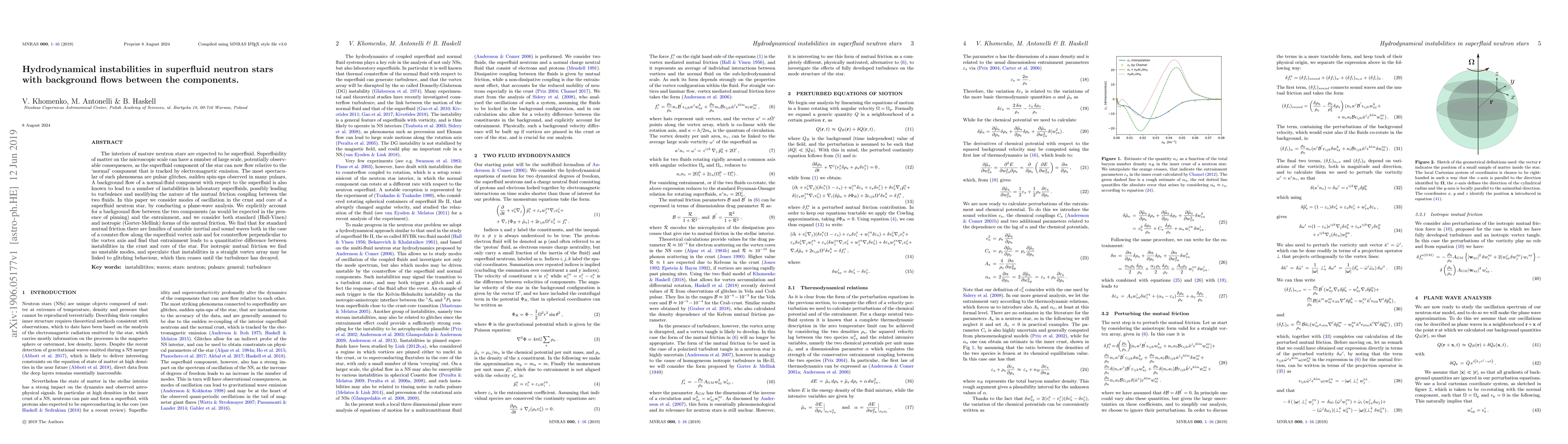 The interiors of mature neutron stars are expected to be superfluid. Superfluidity of matter on the microscopic scale can have a number of large scale, potentially observable consequences, as the superfluid component of the star can now flow relative to the `normal' component that is tracked by electromagnetic emission. The most spectacular of such phenomena are pulsar glitches, sudden spin-ups observed in many pulsars. A background flow of a normal-fluid component with respect to the superfluid is also known to lead to a number of instabilities in laboratory superfluids, possibly leading to turbulence and modifying the nature of the mutual friction coupling between the two fluids. In this paper we consider modes of oscillation in the crust and core of a superfluid neutron star, by conducting a plane-wave analysis. We explicitly account for a background flow between the two components (as would be expected in the presence of pinning) and the entrainment, and we consider both standard (Hall-Vinen) and isotropic (Gorter-Mellink) forms of the mutual friction. We find that for standard mutual friction there are families of unstable inertial and sound waves both in the case of a counter-flow along the superfluid vortex axis and for counterflow perpendicular to the vortex axis and find that entrainment leads to a quantitative difference between instabilities in the crust and core of the star. For isotropic mutual friction we find no unstable modes, and speculate that instabilities in a straight vortex array may be linked to glitching behaviour, which then ceases until the turbulence has decayed.