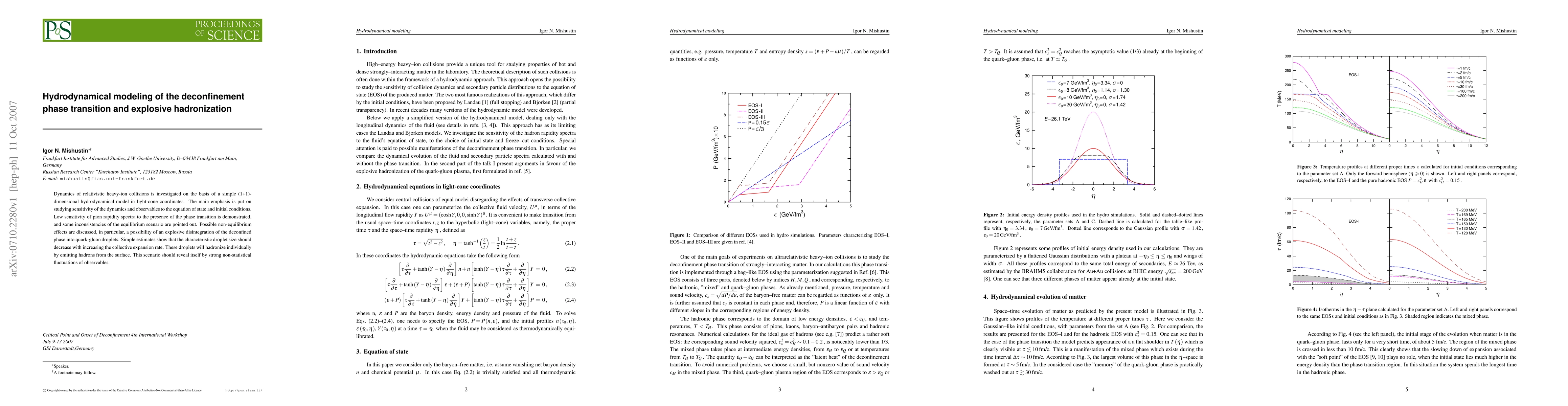 Dynamics of relativistic heavy-ion collisions is investigated on the basis of a simple (1+1)-dimensional hydrodynamical model in light-cone coordinates. The main emphasis is put on studying sensitivity of the dynamics and observables to the equation of state and initial conditions. Low sensitivity of pion rapidity spectra to the presence of the phase transition is demonstrated, and some inconsistencies of the equilibrium scenario are pointed out. Possible non-equilibrium effects are discussed, in particular, a possibility of an explosive disintegration of the deconfined phase into quark-gluon droplets. Simple estimates show that the characteristic droplet size should decrease with increasing the collective expansion rate. These droplets will hadronize individually by emitting hadrons from the surface. This scenario should reveal itself by strong non-statistical fluctuations of observables.