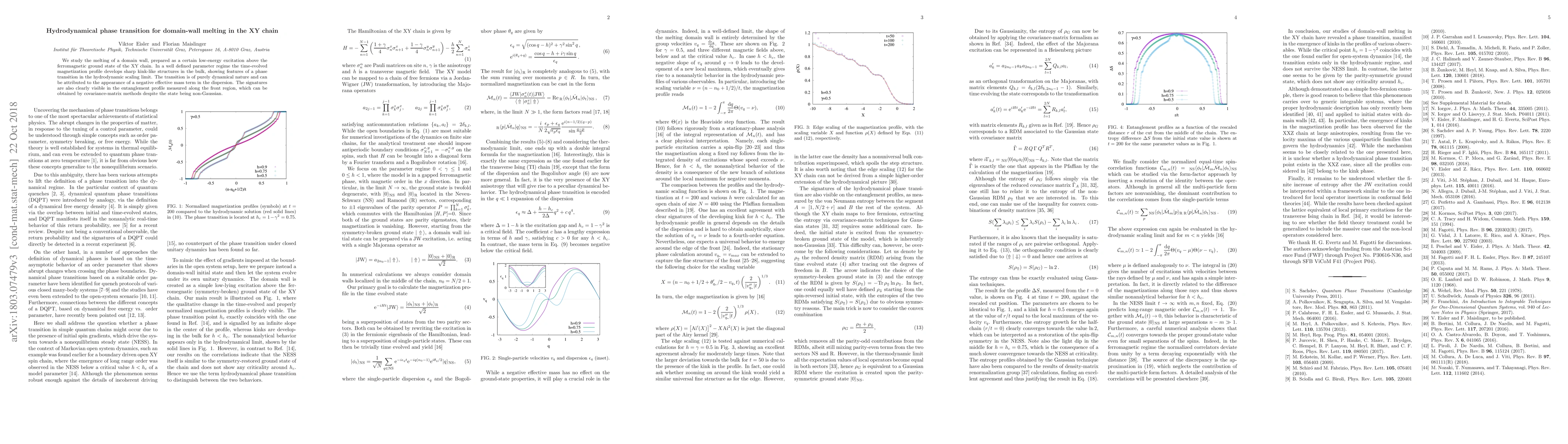 We study the melting of a domain wall, prepared as a certain low-energy excitation above the ferromagnetic ground state of the XY chain. In a well defined parameter regime the time-evolved magnetization profile develops sharp kink-like structures in the bulk, showing features of a phase transition in the hydrodynamic scaling limit. The transition is of purely dynamical nature and can be attributed to the appearance of a negative effective mass term in the dispersion. The signatures are also clearly visible in the entanglement profile measured along the front region, which can be obtained by covariance-matrix methods despite the state being non-Gaussian.