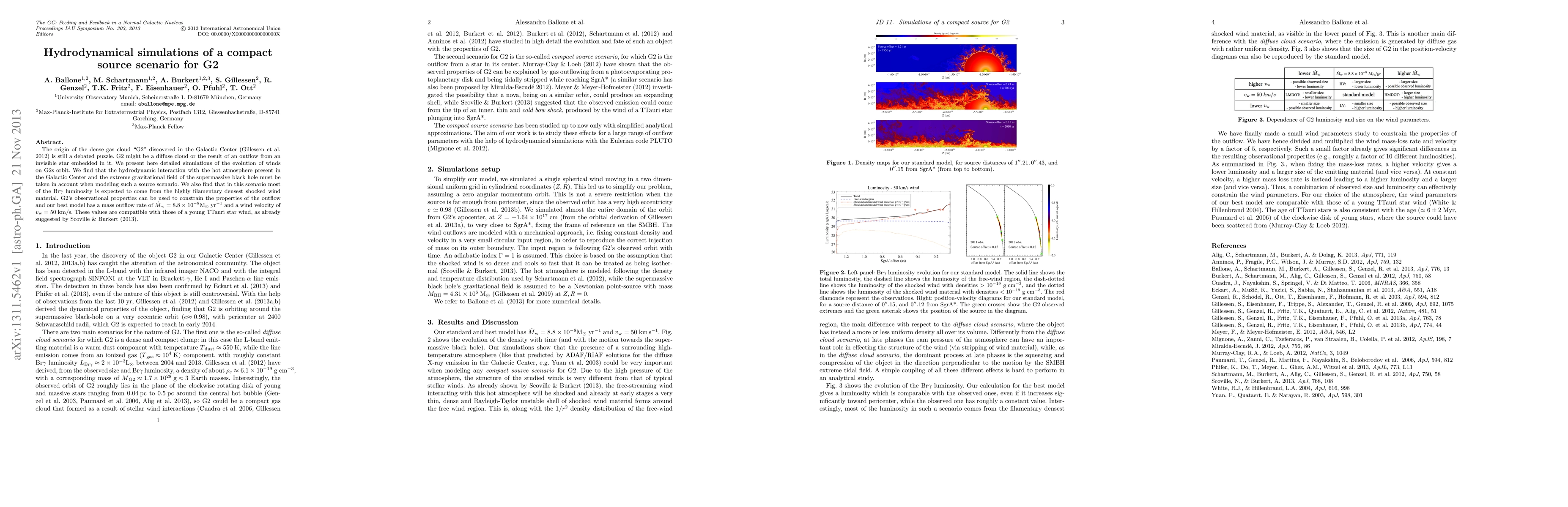 Researchers used hydrodynamic simulations to study the origin of G2, a dense gas cloud near the Galactic Center, finding that it is likely the result of an outflow from an invisible star, with most Br· luminosity coming from highly filamentary densest shocked wind material.
