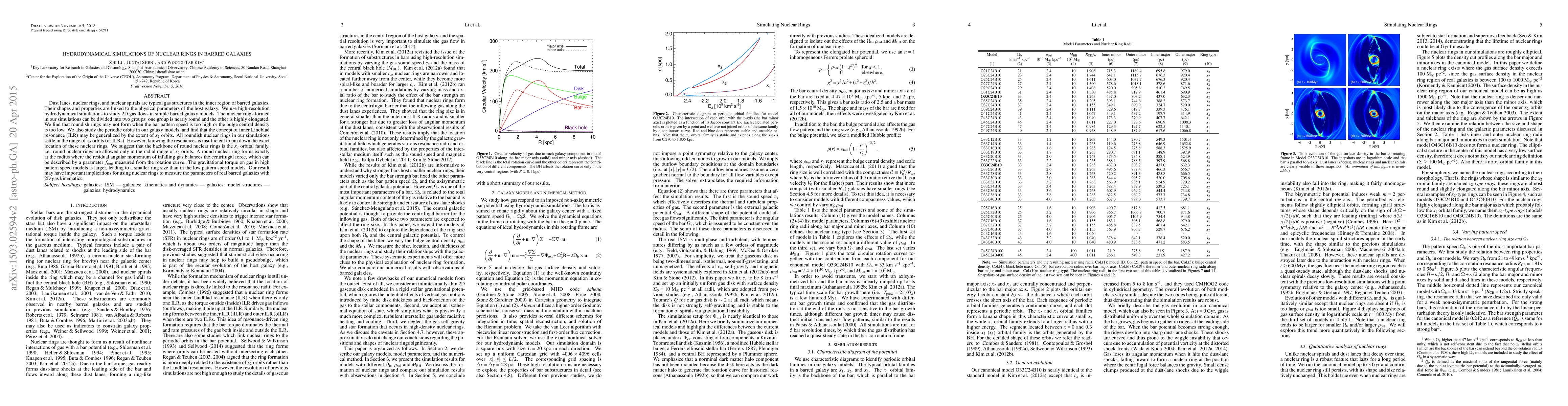This paper uses high-resolution hydrodynamical simulations to explore the formation of nuclear rings in barred galaxies, finding that roundish rings form within the range of $x_2$ orbits and are influenced by the bar pattern speed and bulge central density. The study suggests that the exact location of these rings depends on balancing residual angular momentum and centrifugal force, with implications for measuring galaxy parameters.