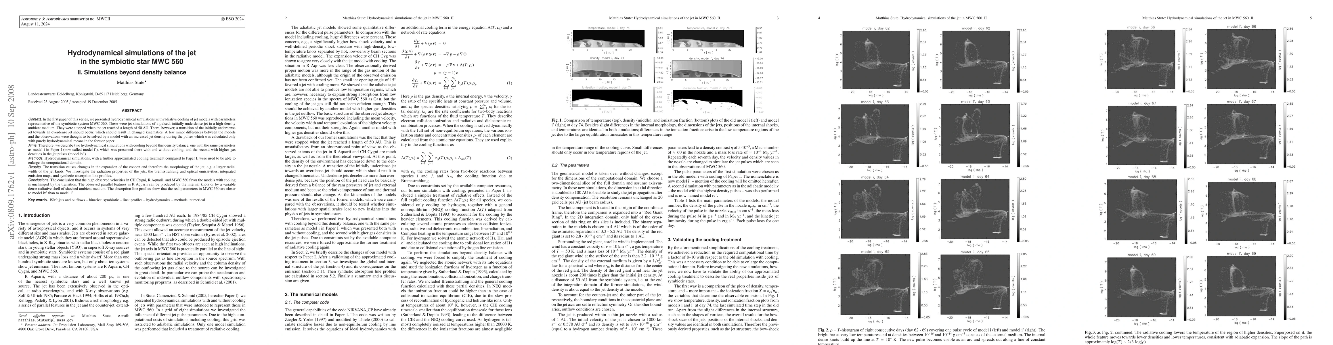 This paper extends hydrodynamical simulations of the jet in MWC 560 beyond the density balance transition, showing changes in jet morphology and kinematics. The simulations indicate that the observed high velocities in similar systems support models with cooling, and that MWC 560's parameters align more closely with a model featuring higher jet pulse densities.