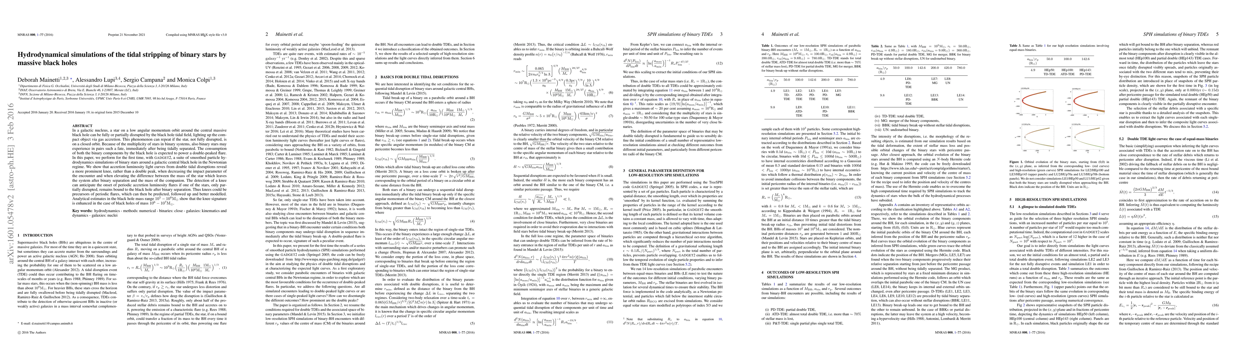 In a galactic nucleus, a star on a low angular momentum orbit around the central massive black hole can be fully or partially disrupted by the black hole tidal field, lighting up the compact object via gas accretion. This phenomenon can repeat if the star, not fully disrupted, is on a closed orbit. Because of the multiplicity of stars in binary systems, also binary stars may experience in pairs such a fate, immediately after being tidally separated. The consumption of both the binary components by the black hole is expected to power a double-peaked flare. In this paper, we perform for the first time, with GADGET2, a suite of smoothed particle hydrodynamics simulations of binary stars around a galactic central black hole in the Newtonian regime. We show that accretion luminosity light curves from double tidal disruptions reveal a more prominent knee, rather than a double peak, when decreasing the impact parameter of the encounter and when elevating the difference between the mass of the star which leaves the system after binary separation and the mass of the companion. The detection of a knee can anticipate the onset of periodic accretion luminosity flares if one of the stars, only partially disrupted, remains bound to the black hole after binary separation. Thus knees could be precursors of periodic flares, which can then be predicted, followed up and better modelled. Analytical estimates in the black hole mass range $10^5-10^8 \rm M_{\rm \odot}$ show that the knee signature is enhanced in the case of black holes of mass $10^6-10^7 \rm M_{\rm \odot}$.