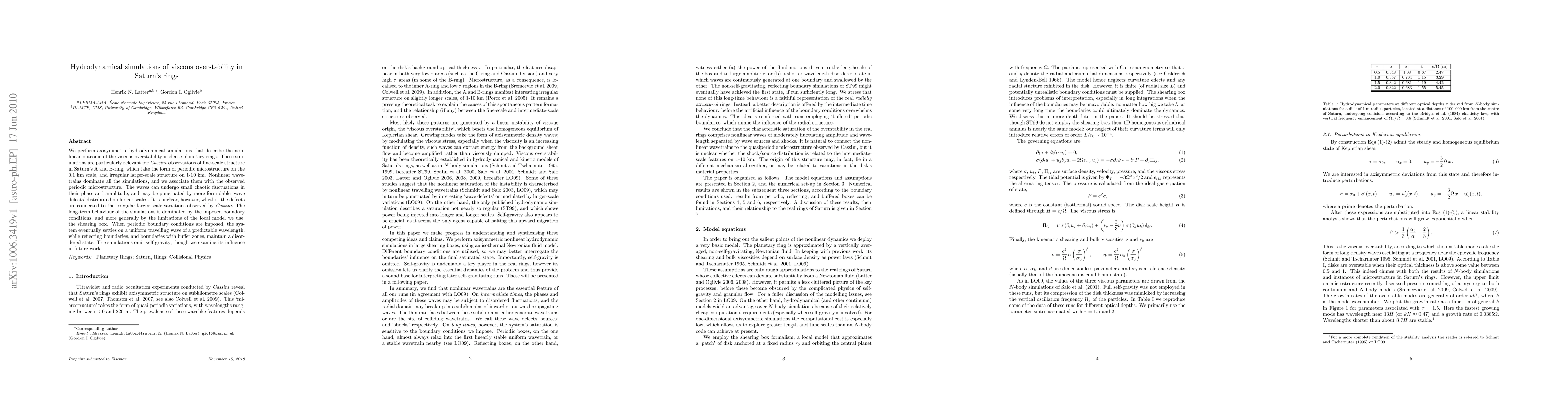 This paper presents hydrodynamical simulations exploring the nonlinear effects of viscous overstability in Saturn's rings, correlating simulated wavetrains with observed microstructures. The simulations predict a chaotic state under certain boundary conditions and hint at future work examining self-gravity's role.