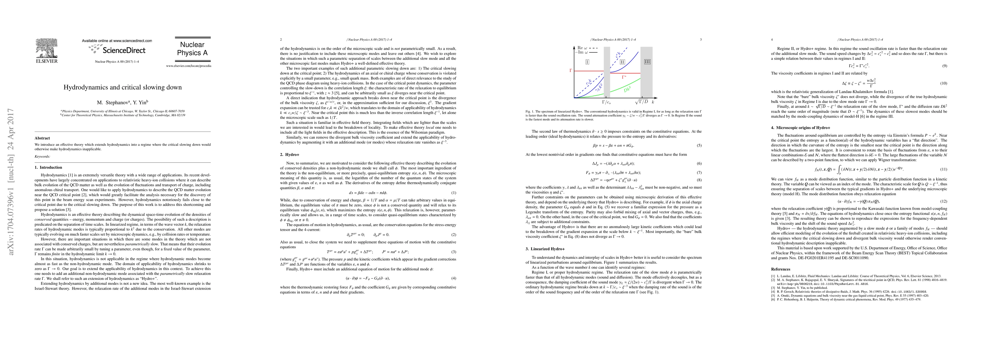 Summary: This paper proposes an extended hydrodynamic theory to address the limitations posed by critical slowing down, ensuring applicability in regimes where traditional hydrodynamics fails. The new framework aims to provide a more accurate description of fluid dynamics near critical points.