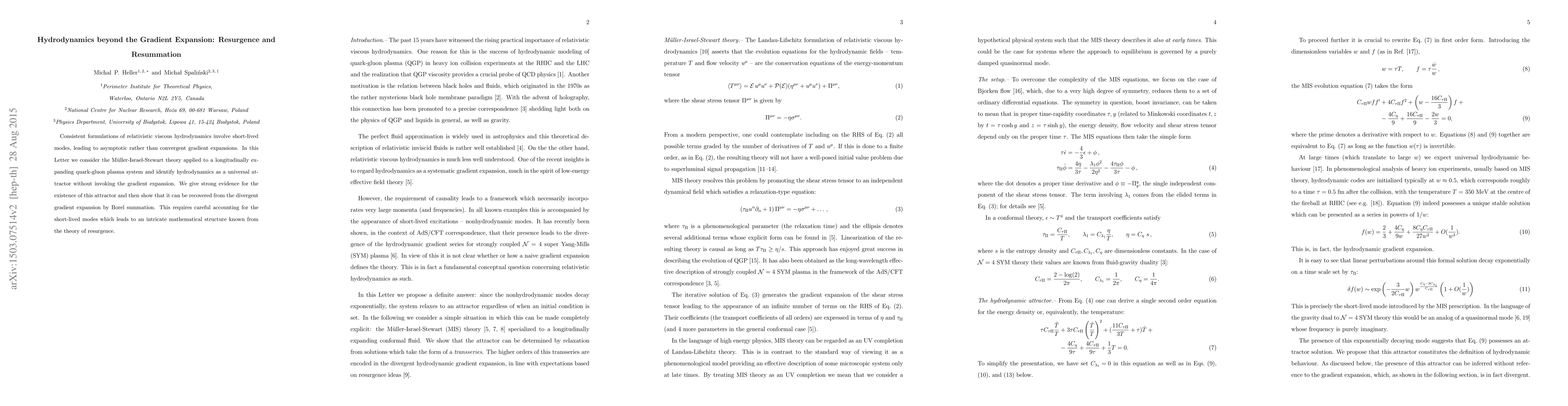 This paper explores relativistic viscous hydrodynamics beyond the traditional gradient expansion, demonstrating that hydrodynamic behavior emerges as a universal attractor in quark-gluon plasma systems. It employs Borel summation and resurgence theory to recover this attractor from divergent expansions, highlighting the importance of accounting for short-lived modes.