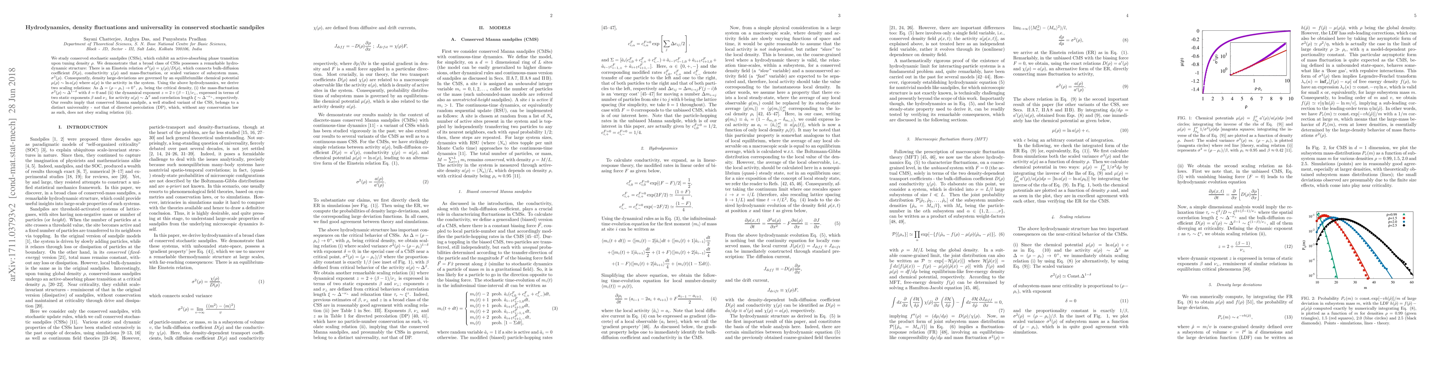Research on conserved stochastic sandpiles shows that many exhibit a universal hydrodynamic structure connected to density fluctuations, leading to scaling relations for mass-fluctuation and dynamical exponent in terms of critical density and static exponents.
