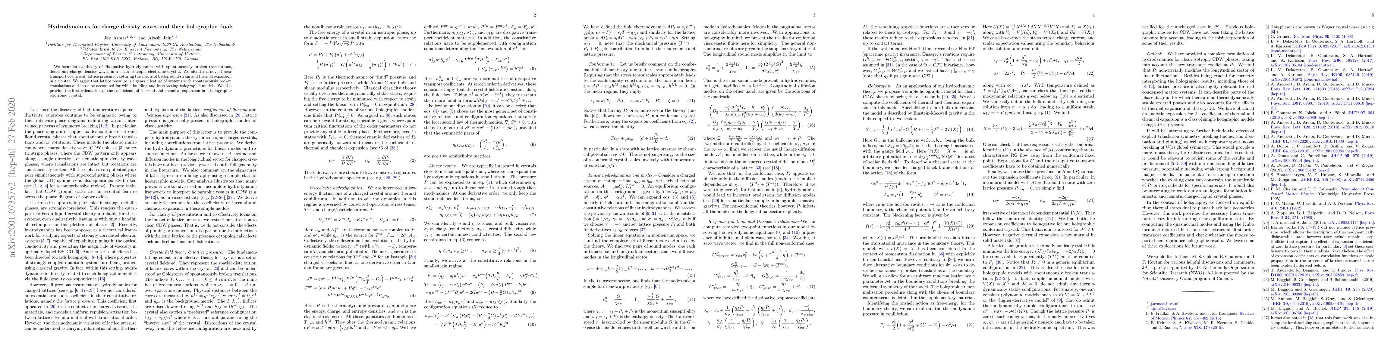 This paper develops a hydrodynamic theory for charge density waves in electronic crystals, introducing a new transport coefficient called lattice pressure. It also explores the implications of this theory for holographic models, providing the first calculations of thermal and chemical expansion coefficients in such systems.