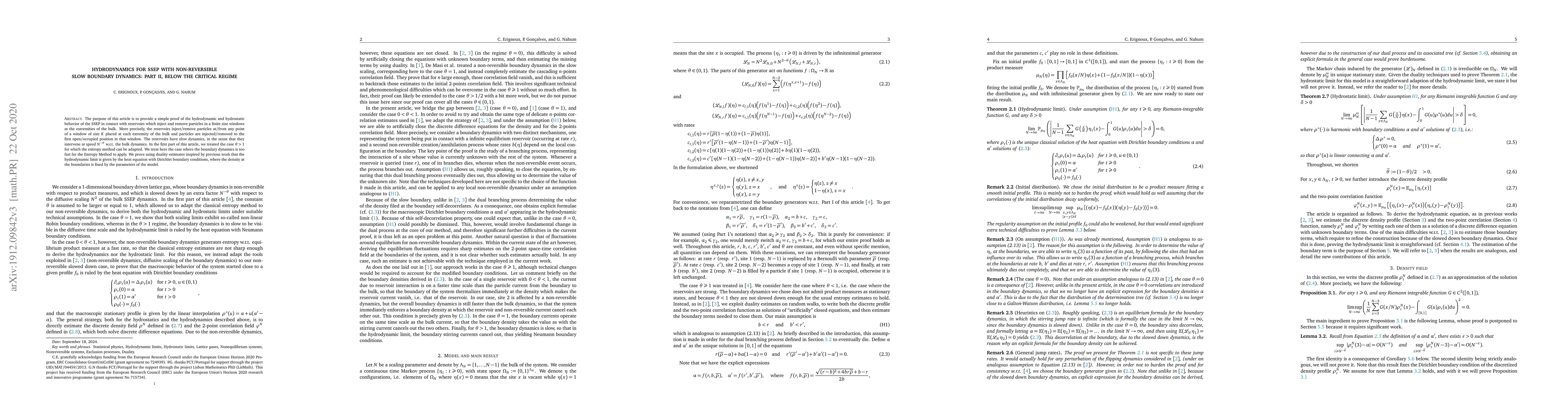 This paper provides a proof of the hydrodynamic behavior of the SSEP with non-reversible slow boundary dynamics below the critical regime. It demonstrates that the system's behavior is governed by the heat equation with Dirichlet boundary conditions, where boundary particle densities are determined by model parameters.