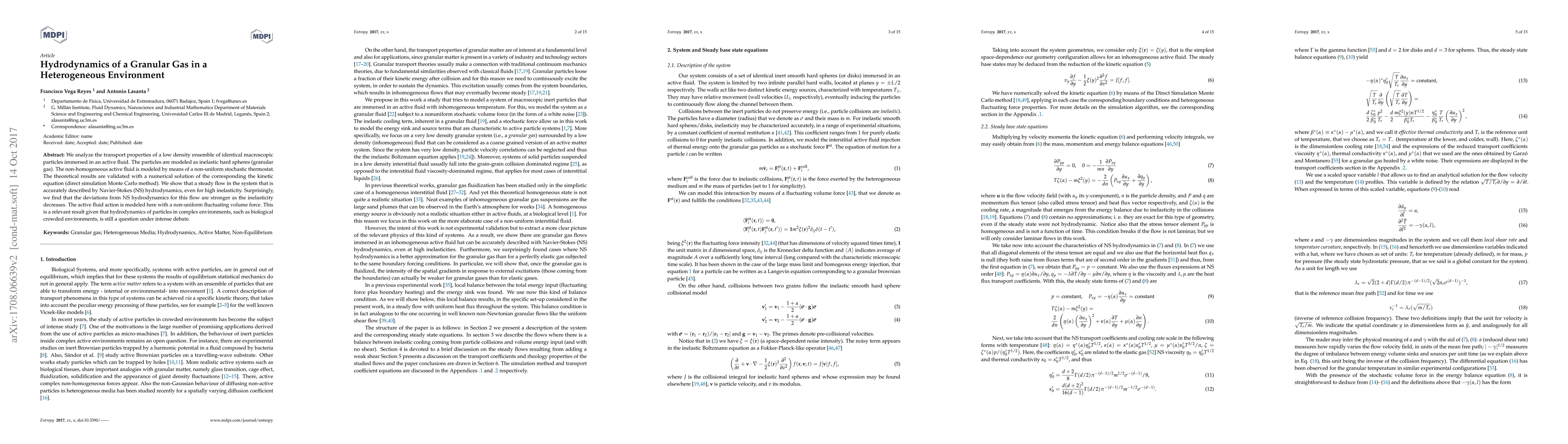 This paper investigates the transport properties of granular particles in a non-homogeneous active fluid, modeled as inelastic hard spheres, and finds that Navier-Stokes hydrodynamics accurately describes steady flow despite high inelasticity. Surprisingly, deviations from NS hydrodynamics are more pronounced with lower inelasticity, highlighting complexities in particle dynamics in heterogeneous environments.
