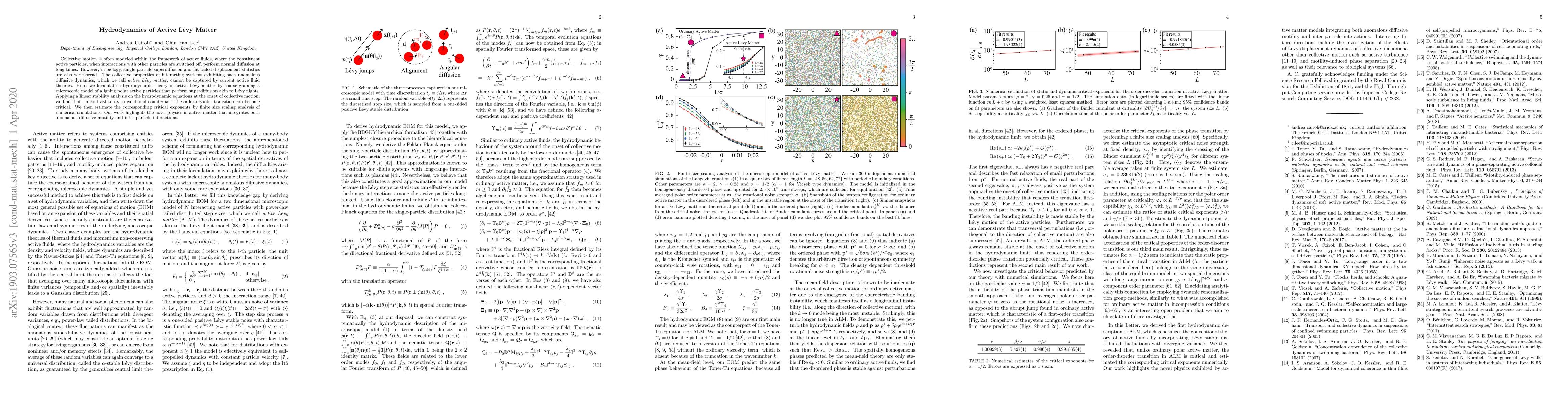 This paper formulates a hydrodynamic theory for active Lévy matter, a system of active particles exhibiting superdiffusion and fat-tailed displacement statistics. The study reveals that the order-disorder transition in such systems can become critical, unlike conventional active fluids, and estimates critical exponents through numerical simulations.